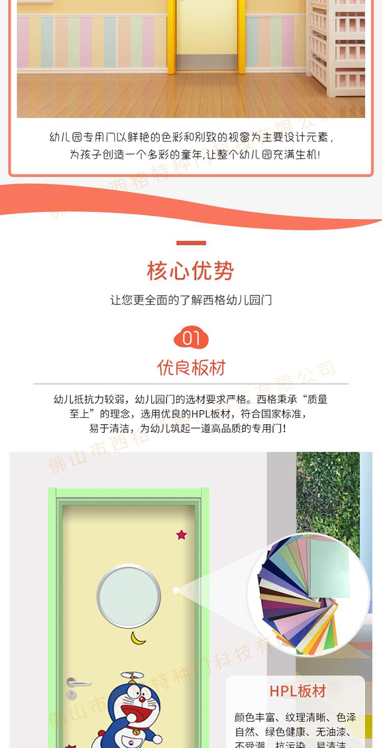 产品简介:chnsige西格特种门,专业生产幼儿园门,木质幼儿园门,幼儿园木门,幼儿园教室门,多钟款式、颜色,尺寸可定制。