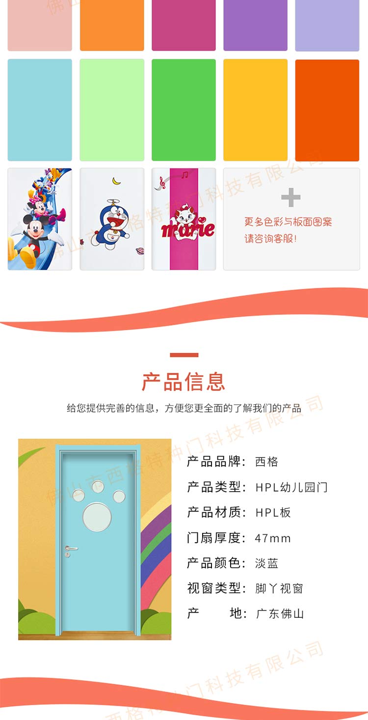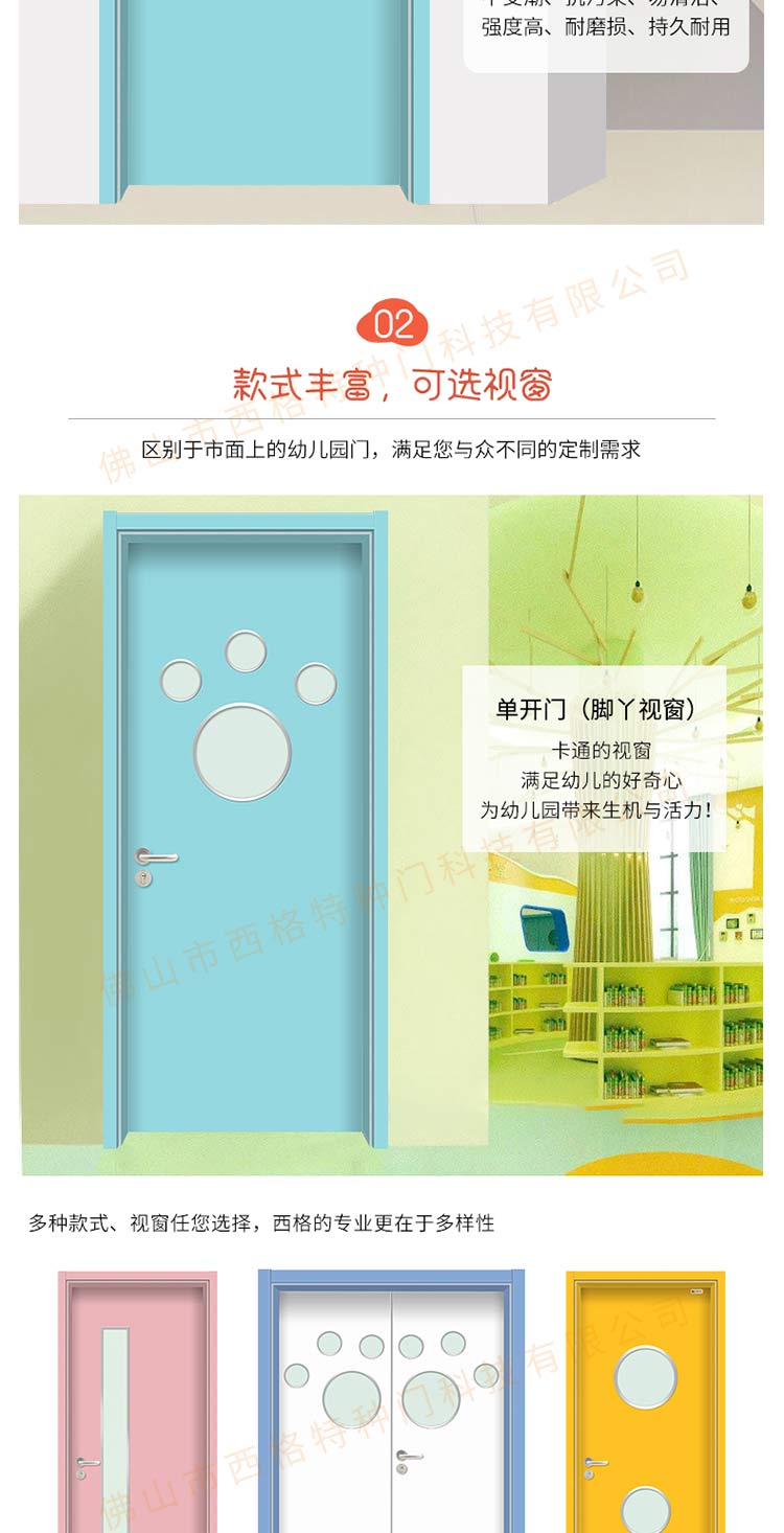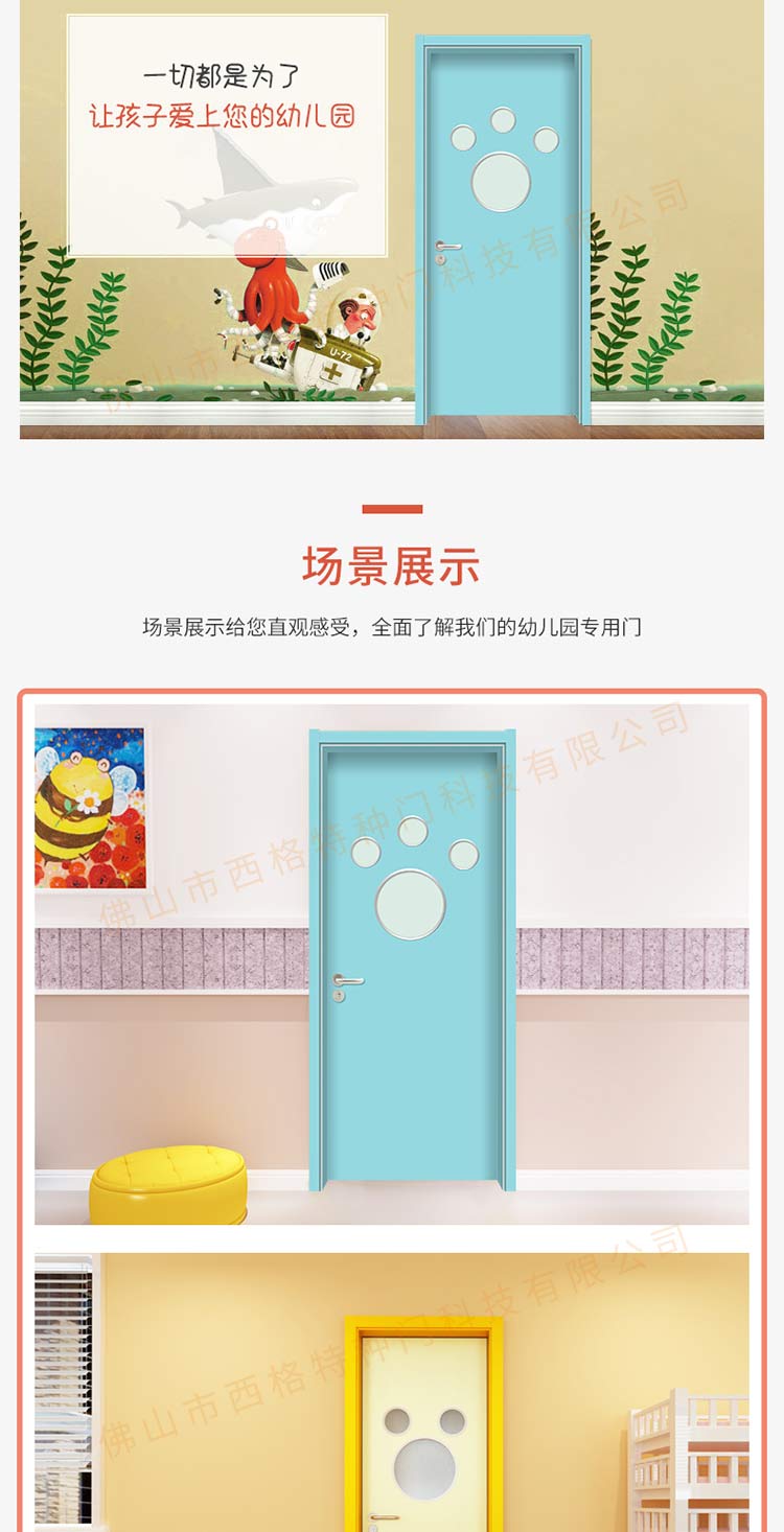 产品简介:chnsige西格特种门,专业生产幼儿园门,木质幼儿园门,幼儿园木门,幼儿园教室门,多钟款式、颜色,尺寸可定制。
