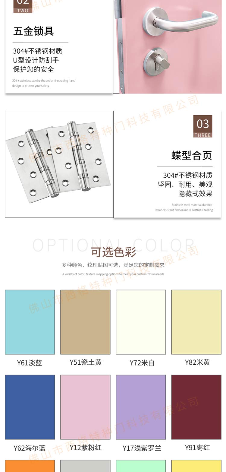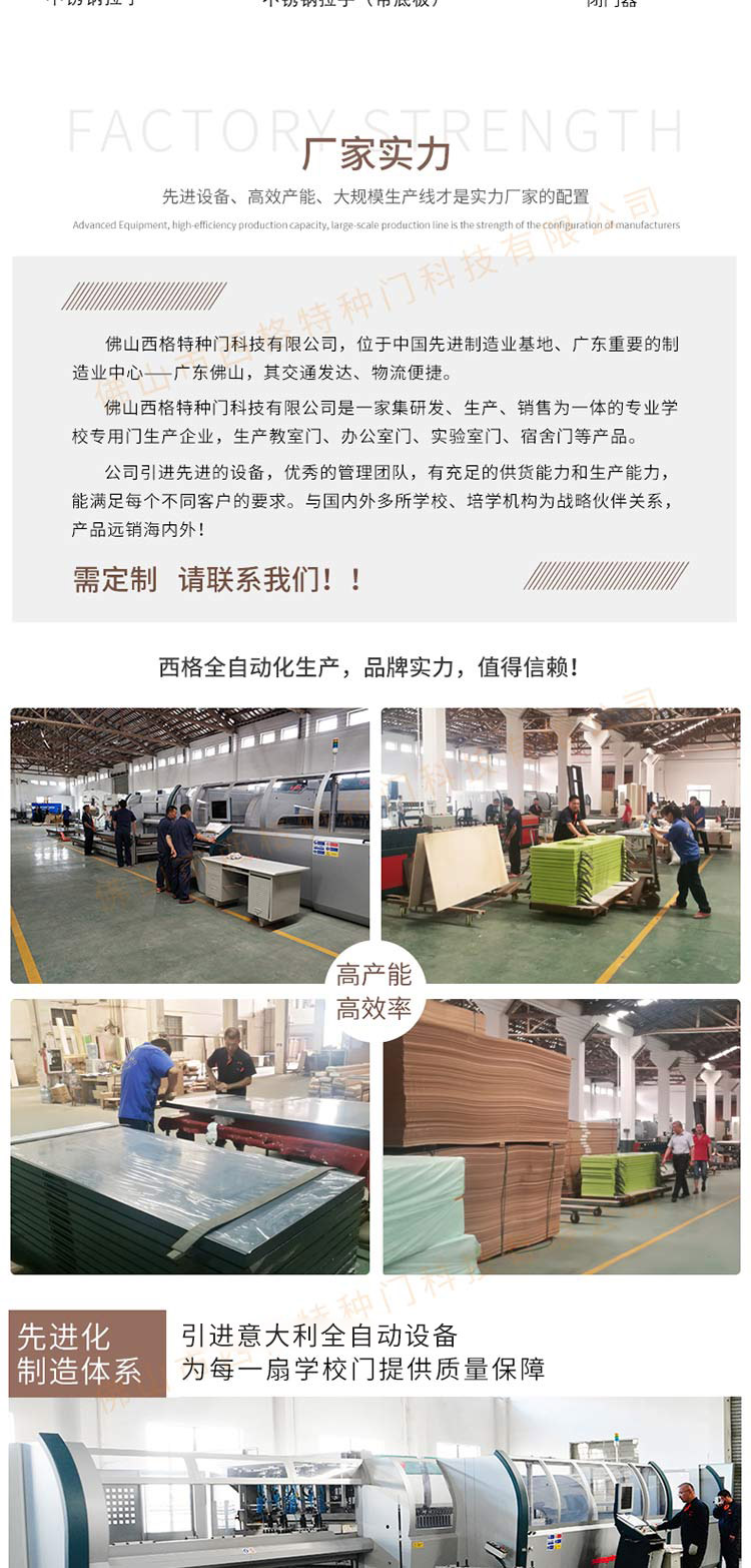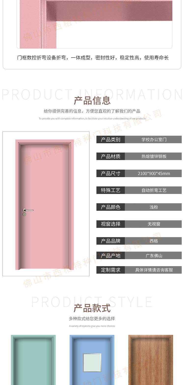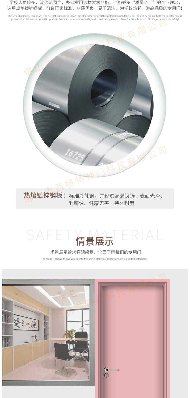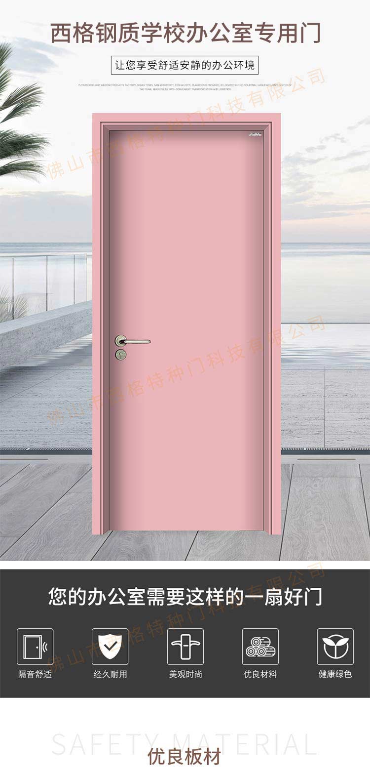 产品简介:chnsige西格特种门,专业生产学校门,学校教室门,学校办公室门,学校钢质门,钢质学校门,多钟款式、颜色,尺寸可定制。