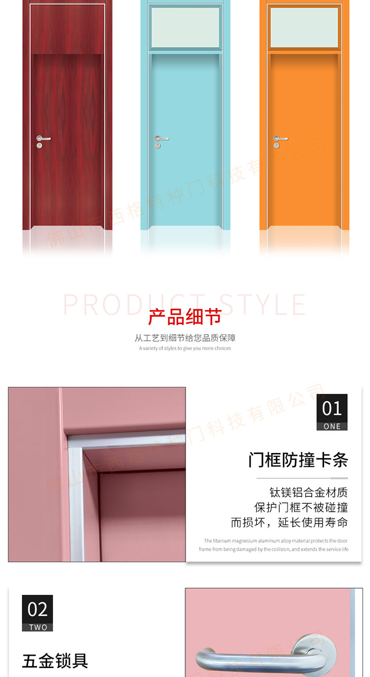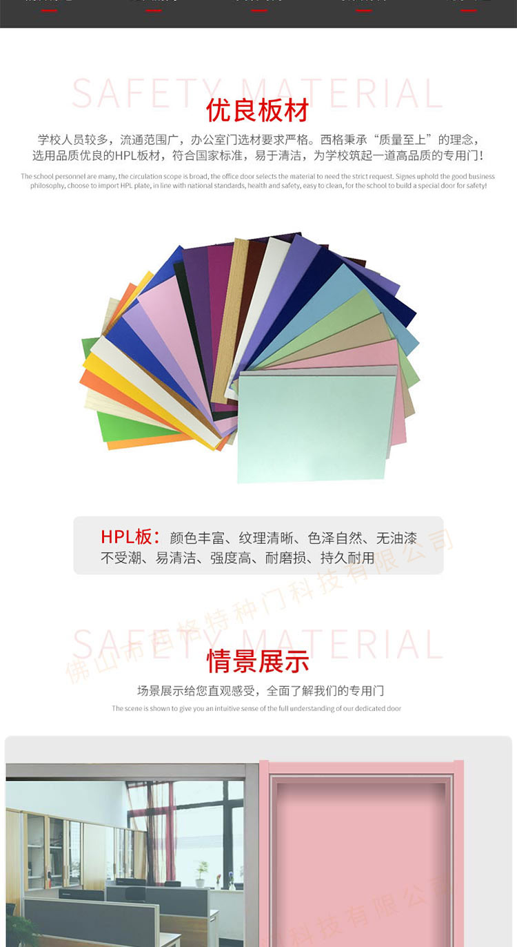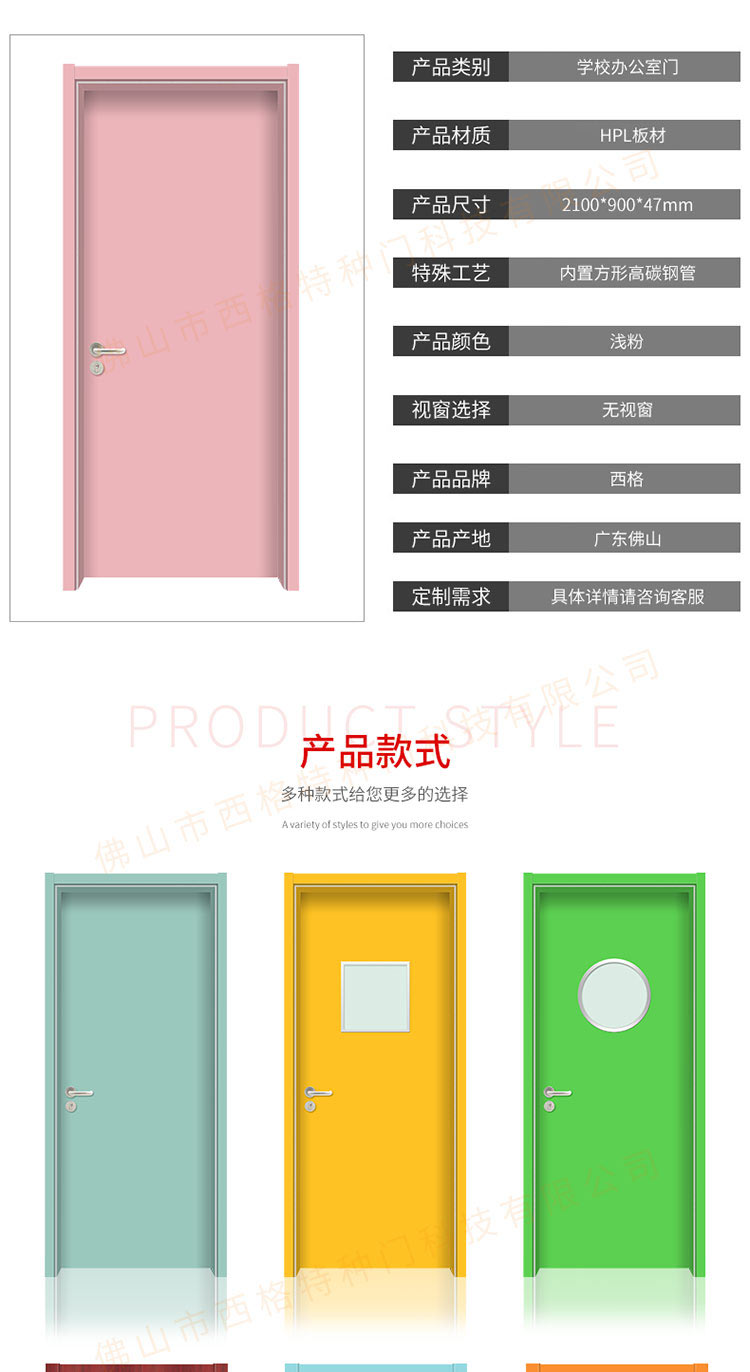 产品简介:chnsige西格特种门,专业生产学校门,学校教室门,学校办公室门,学校木门,木质学校门,多钟款式、颜色,尺寸可定制。