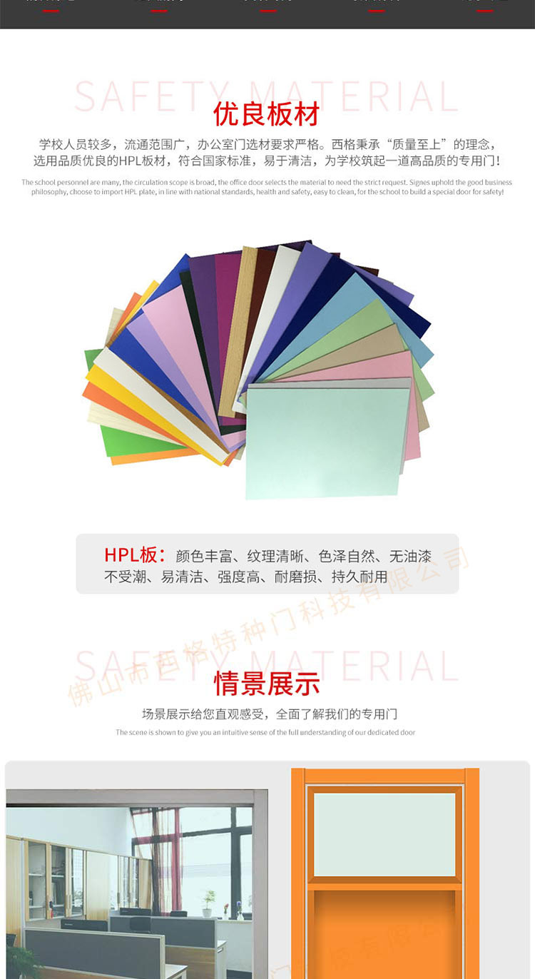 产品简介:chnsige西格特种门,专业生产学校门,学校教室门,学校办公室门,学校木门,木质学校门,多钟款式、颜色,尺寸可定制。