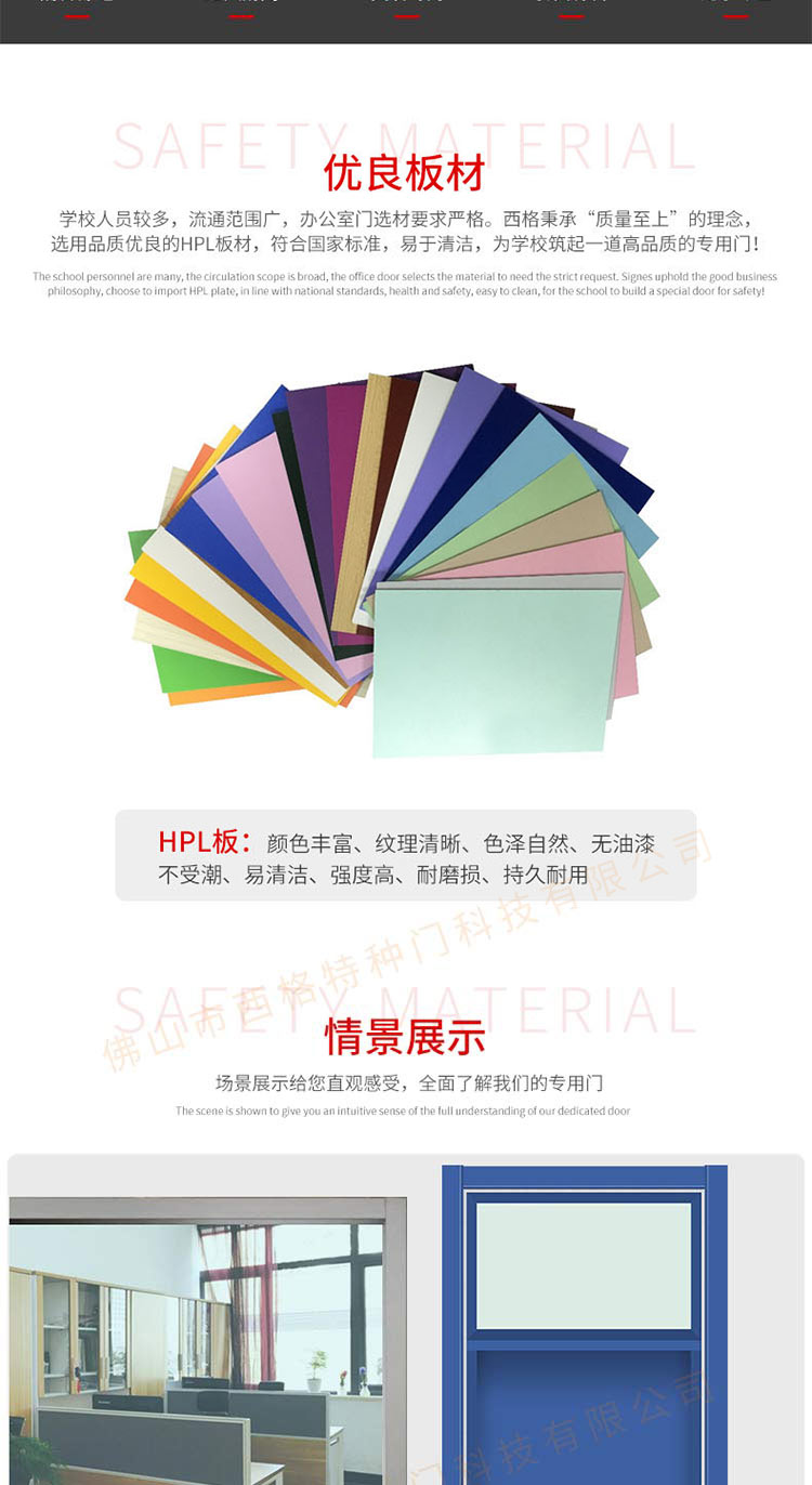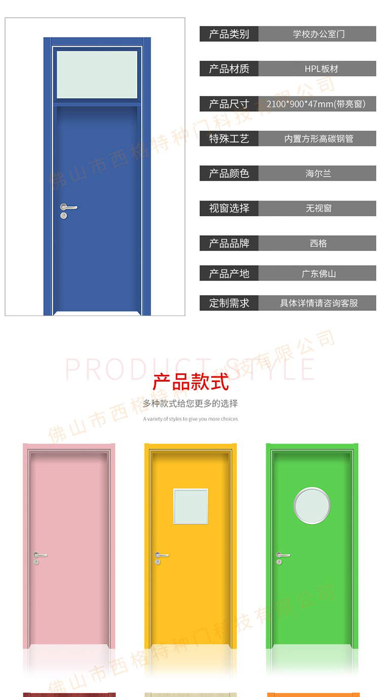 产品简介:chnsige西格特种门,专业生产学校门,学校教室门,学校办公室门,学校木门,木质学校门,多钟款式、颜色,尺寸可定制。