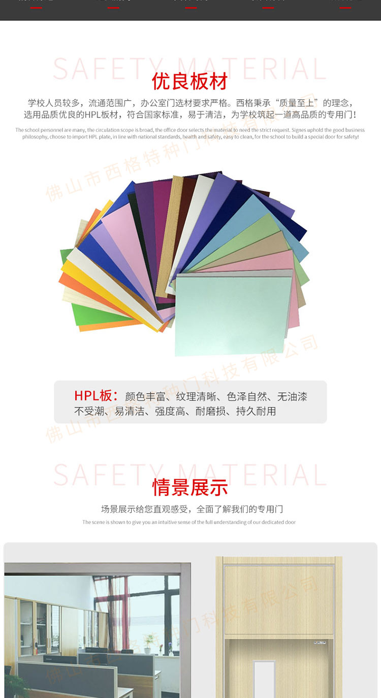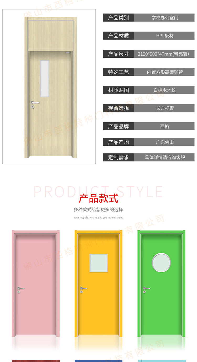 产品简介:chnsige西格特种门,专业生产学校门,学校教室门,学校办公室门,学校木门,木质学校门,多钟款式、颜色,尺寸可定制。