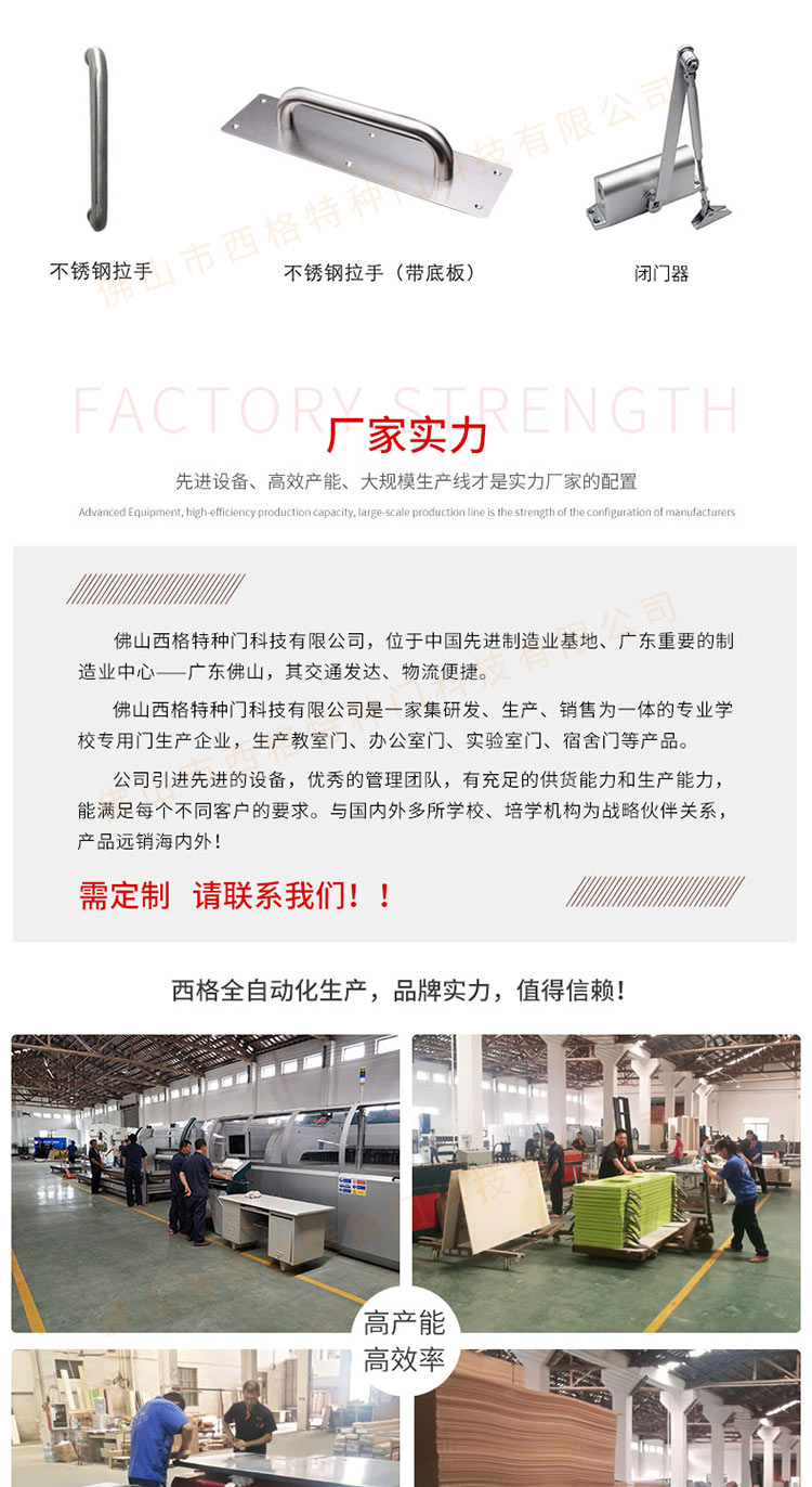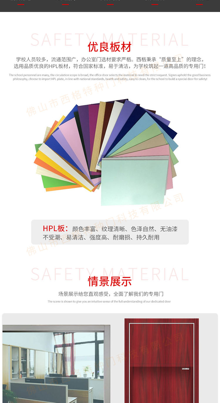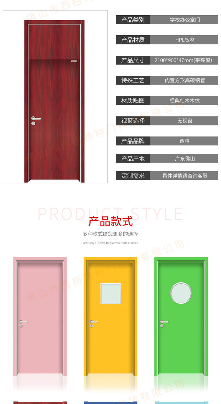 产品简介:chnsige西格特种门,专业生产学校门,学校教室门,学校办公室门,学校木门,木质学校门,多钟款式、颜色,尺寸可定制。