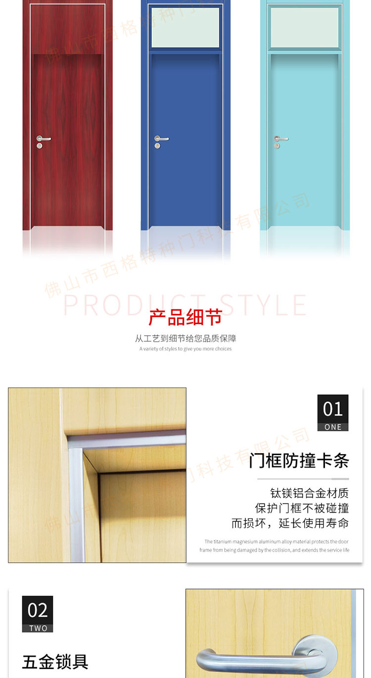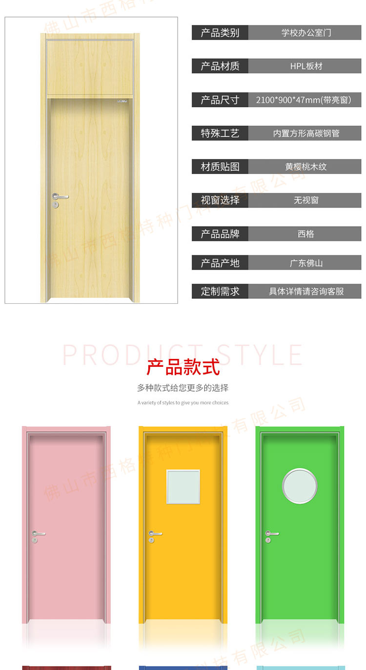 产品简介:chnsige西格特种门,专业生产学校门,学校教室门,学校办公室门,学校木门,木质学校门,多钟款式、颜色,尺寸可定制。