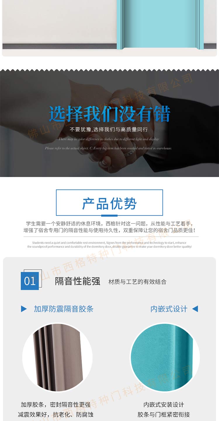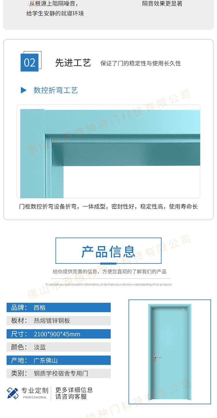 产品简介:chnsige西格特种门,专业生产学校门,学校宿舍门,学校公寓门,学校宿舍门,钢质宿舍门,多钟款式、颜色,尺寸可定制。