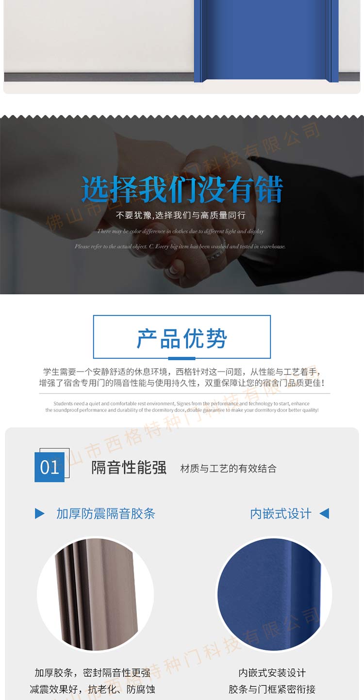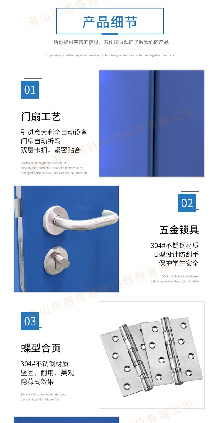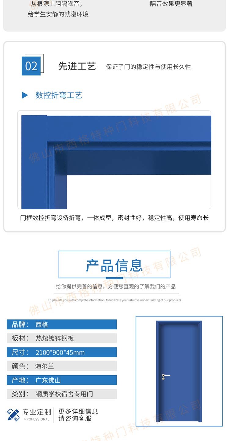 产品简介:chnsige西格特种门,专业生产学校门,学校宿舍门,学校公寓门,学校宿舍门,钢质宿舍门,多钟款式、颜色,尺寸可定制。