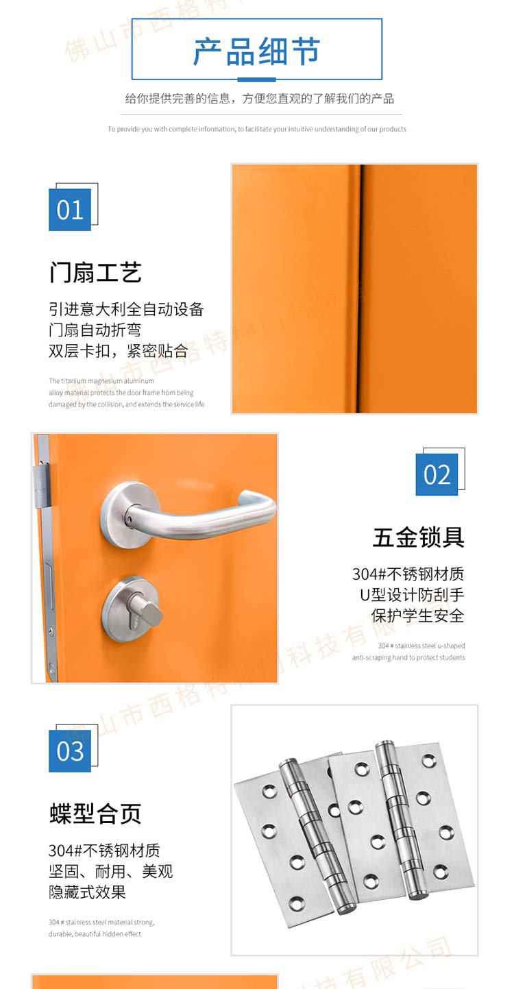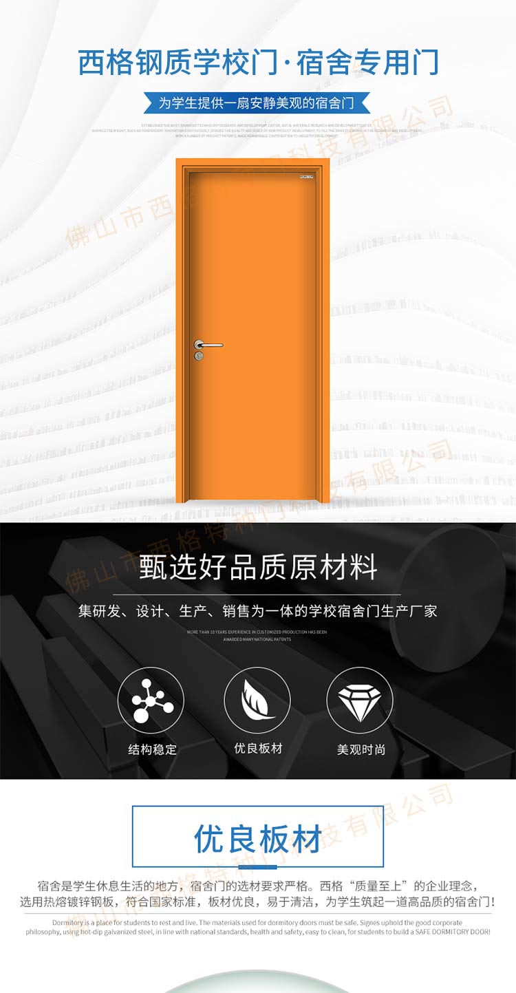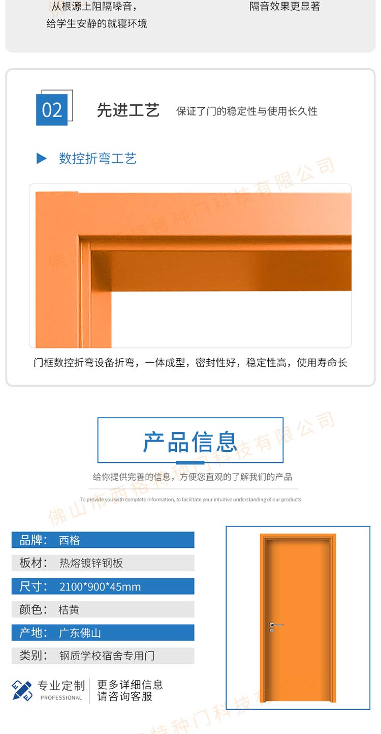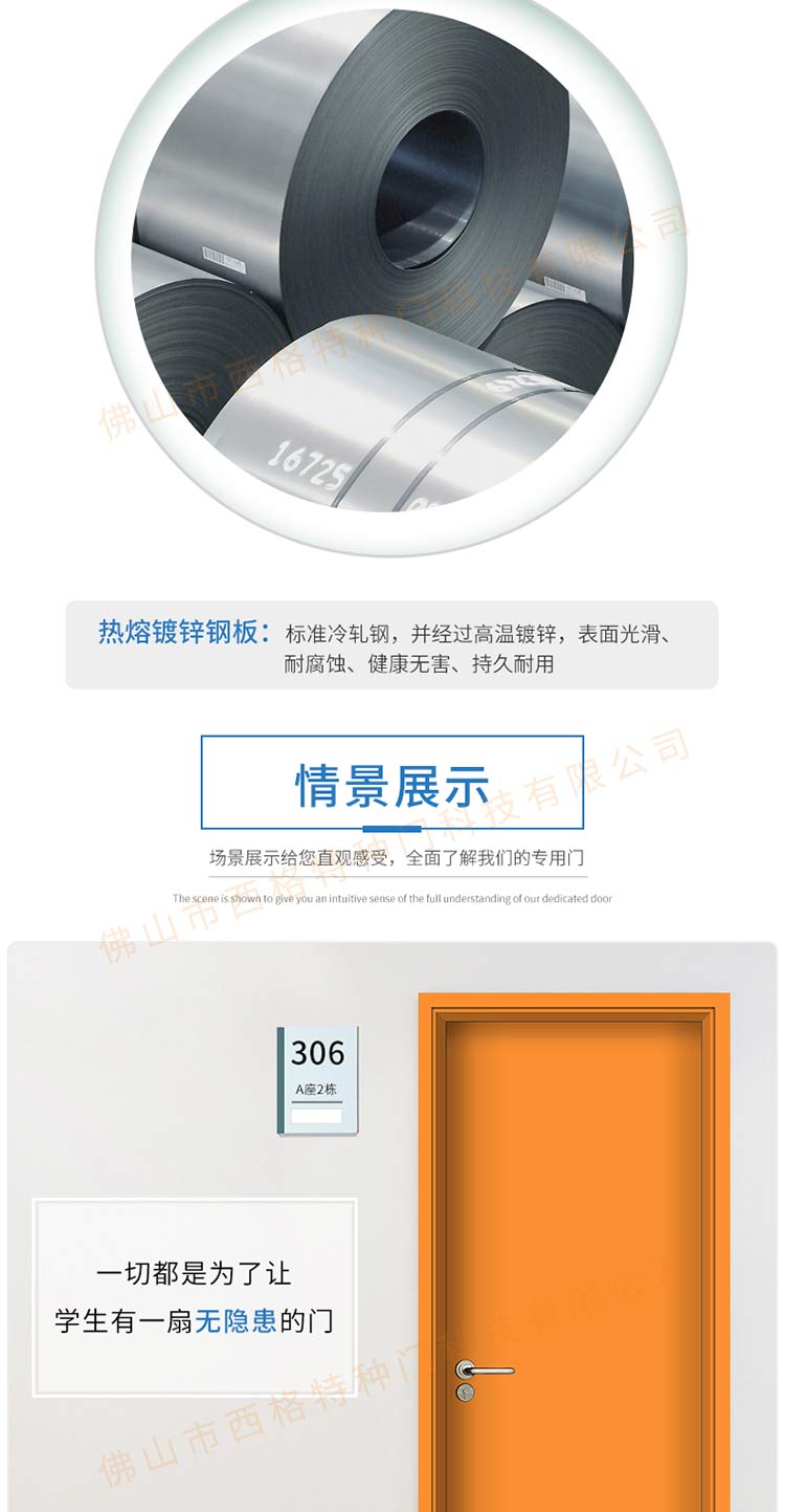 产品简介:chnsige西格特种门,专业生产学校门,学校宿舍门,学校公寓门,学校宿舍门,钢质宿舍门,多钟款式、颜色,尺寸可定制。