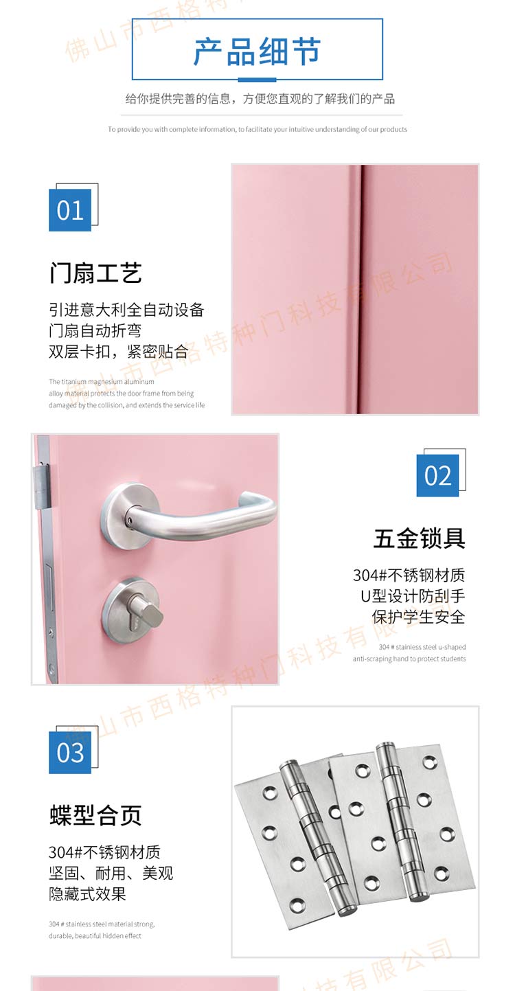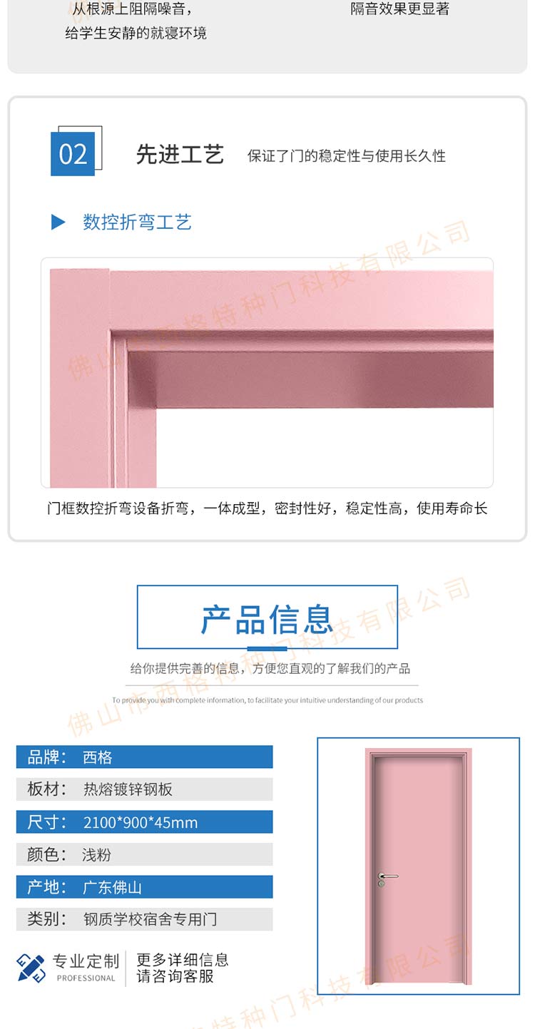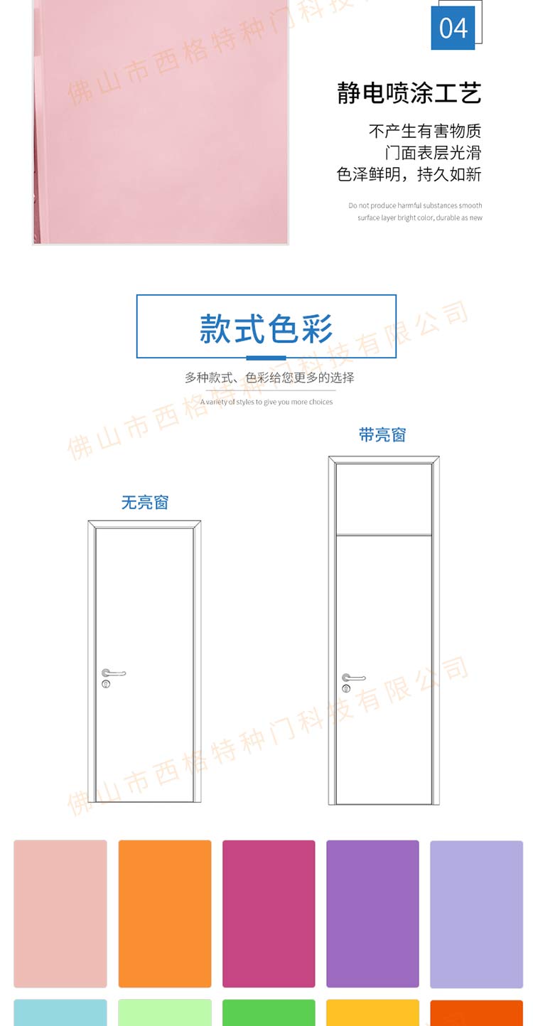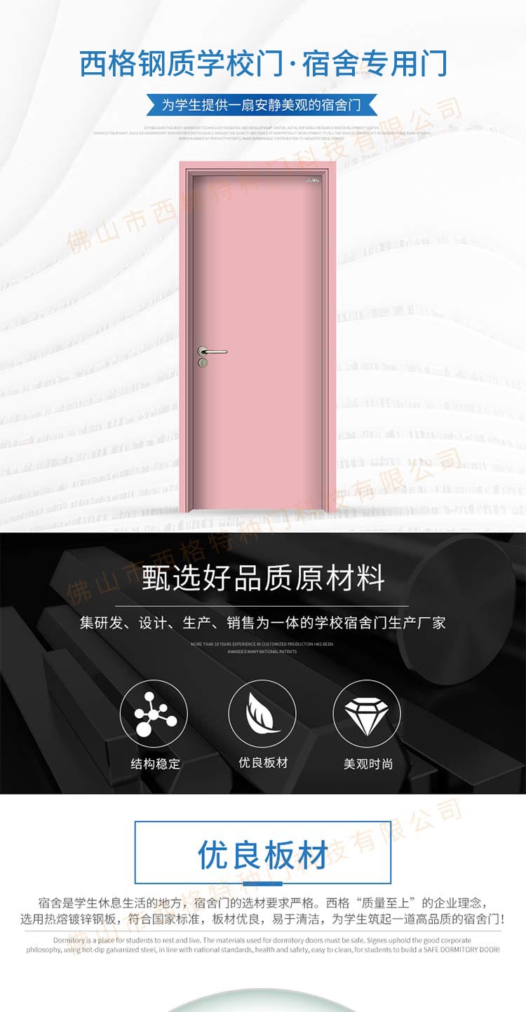产品简介:chnsige西格特种门,专业生产学校门,学校宿舍门,学校公寓门,学校宿舍门,钢质宿舍门,多钟款式、颜色,尺寸可定制。