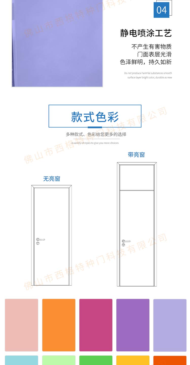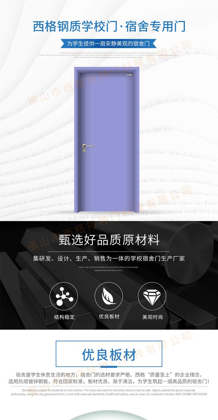 产品简介:chnsige西格特种门,专业生产学校门,学校宿舍门,学校公寓门,学校宿舍门,钢质宿舍门,多钟款式、颜色,尺寸可定制。