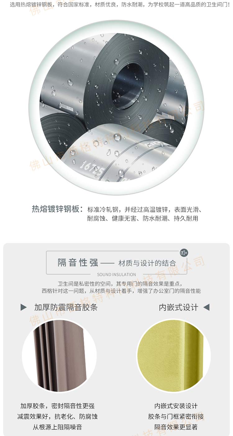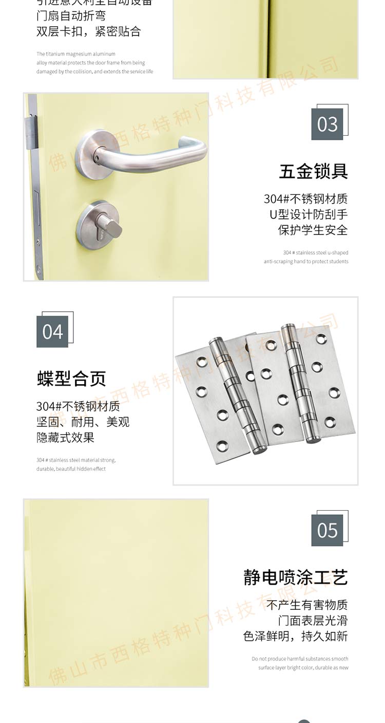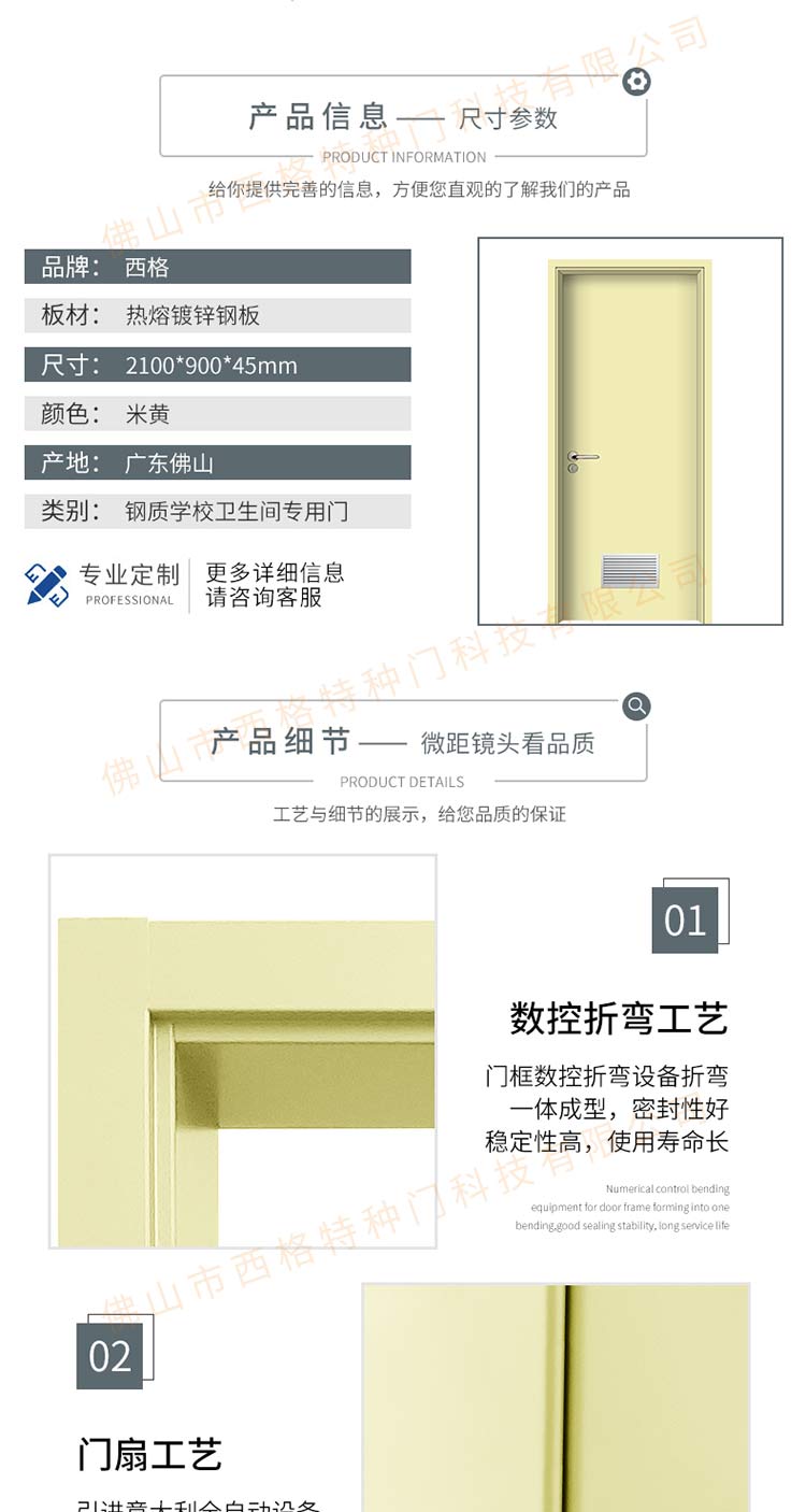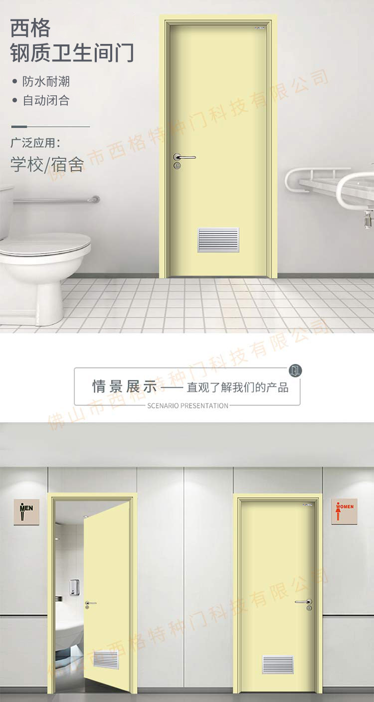 产品简介:chnsige西格特种门,专业生产学校门,学校卫生间门,学校洗手间门,钢质洗手间门,多钟款式、颜色,尺寸可定制。