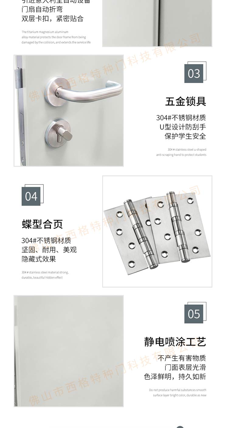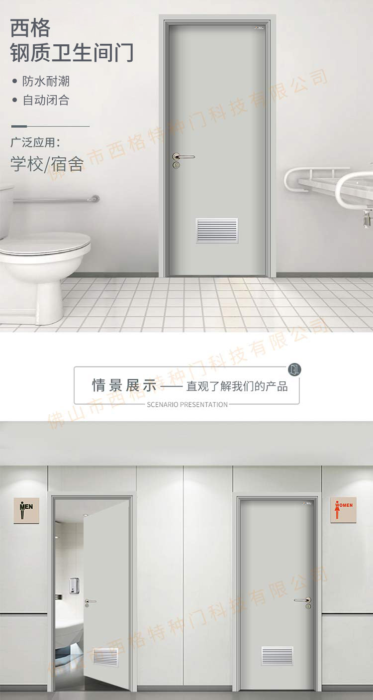 产品简介:chnsige西格特种门,专业生产学校门,学校卫生间门,学校洗手间门,钢质洗手间门,多钟款式、颜色,尺寸可定制。