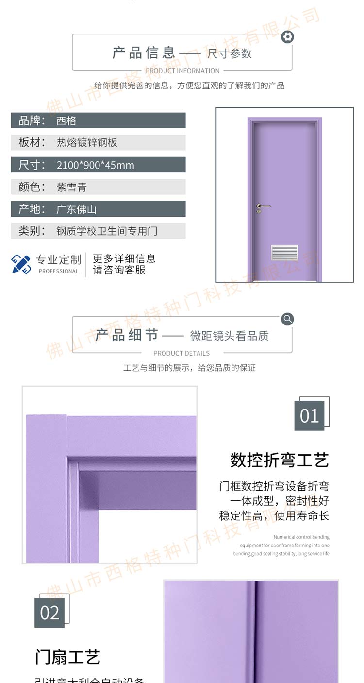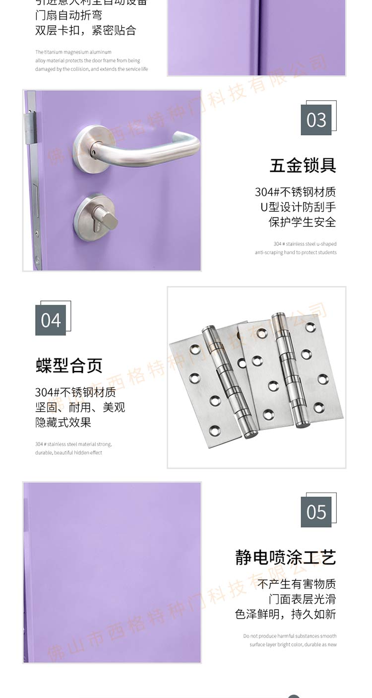 产品简介:佛山市西格特种门科技有限公司专业生产学校门、幼儿园门、学校专用门、教室门。