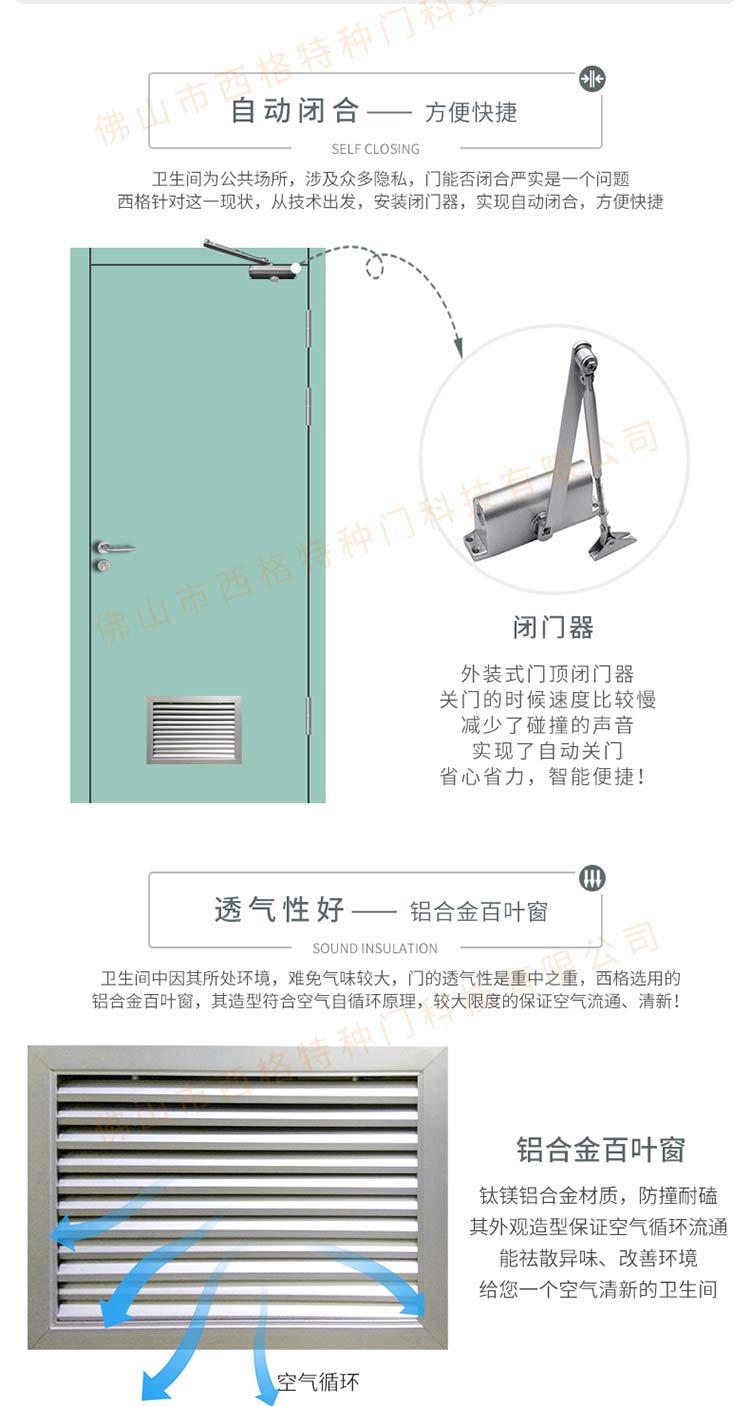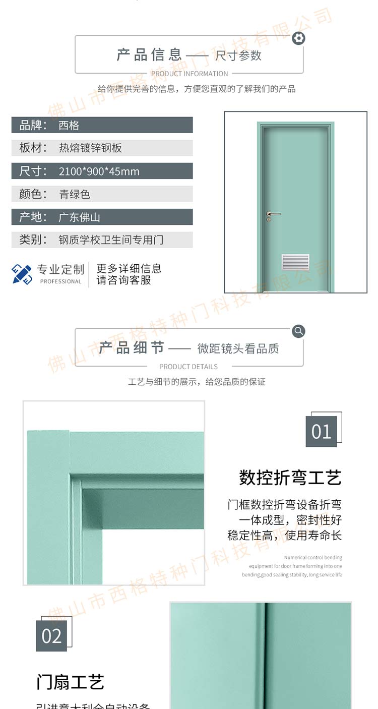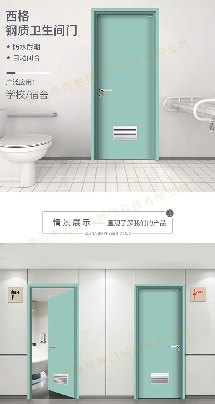 产品简介:chnsige西格特种门,专业生产学校门,学校卫生间门,学校洗手间门,钢质洗手间门,多钟款式、颜色,尺寸可定制。