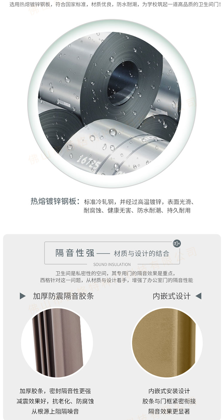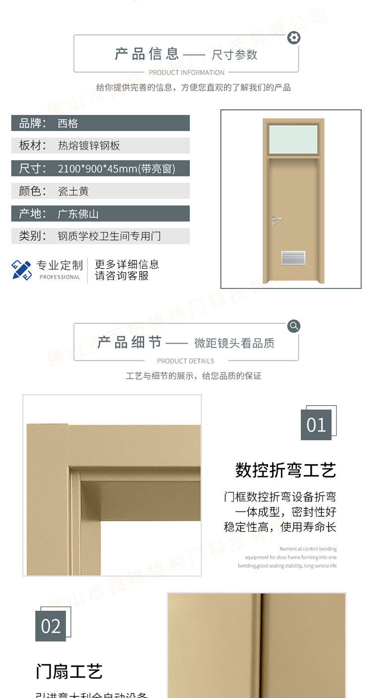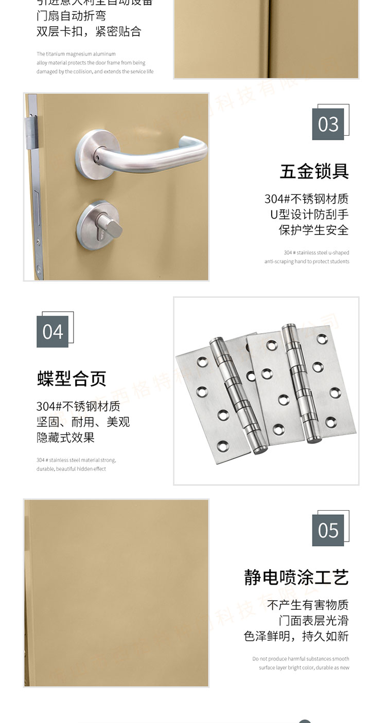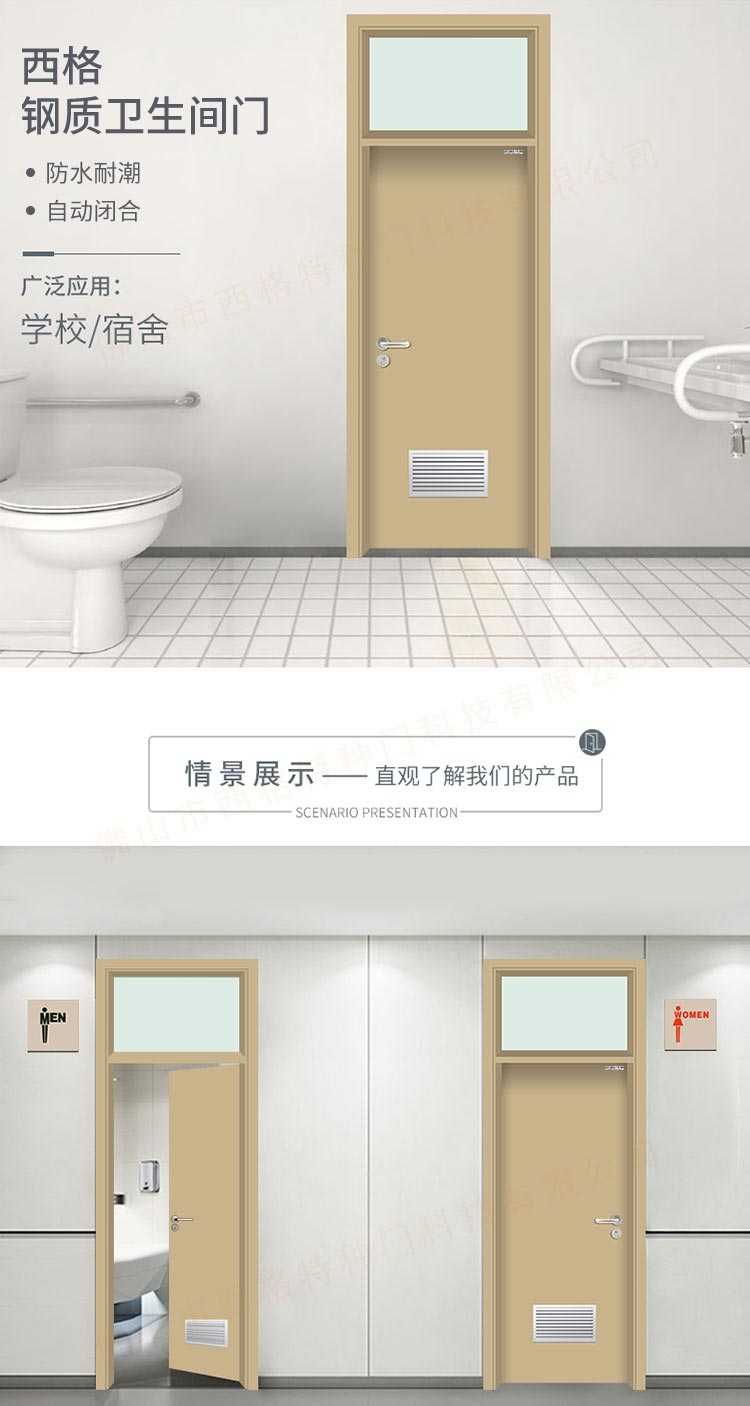 产品简介:chnsige西格特种门,专业生产学校门,学校卫生间门,学校洗手间门,钢质洗手间门,多钟款式、颜色,尺寸可定制。