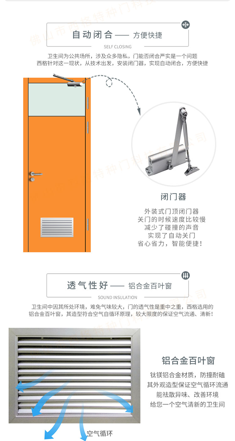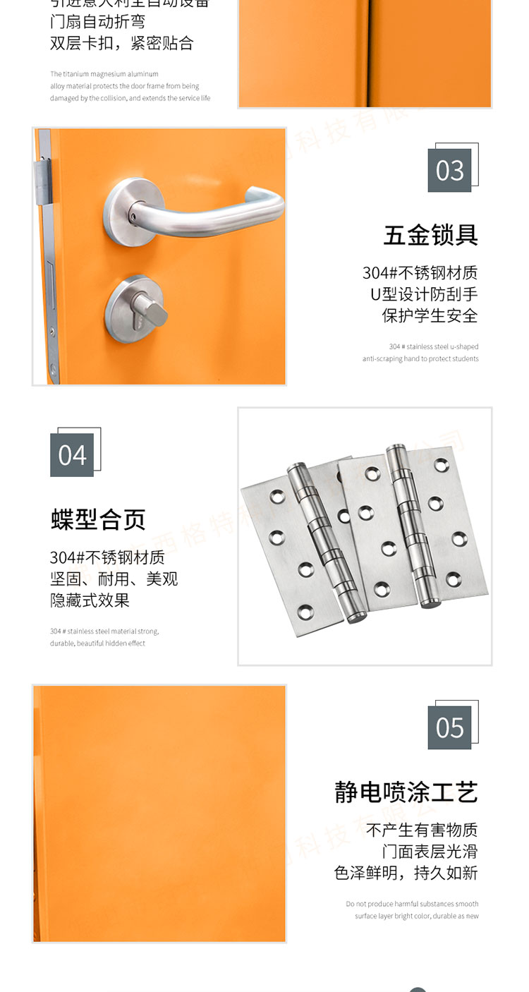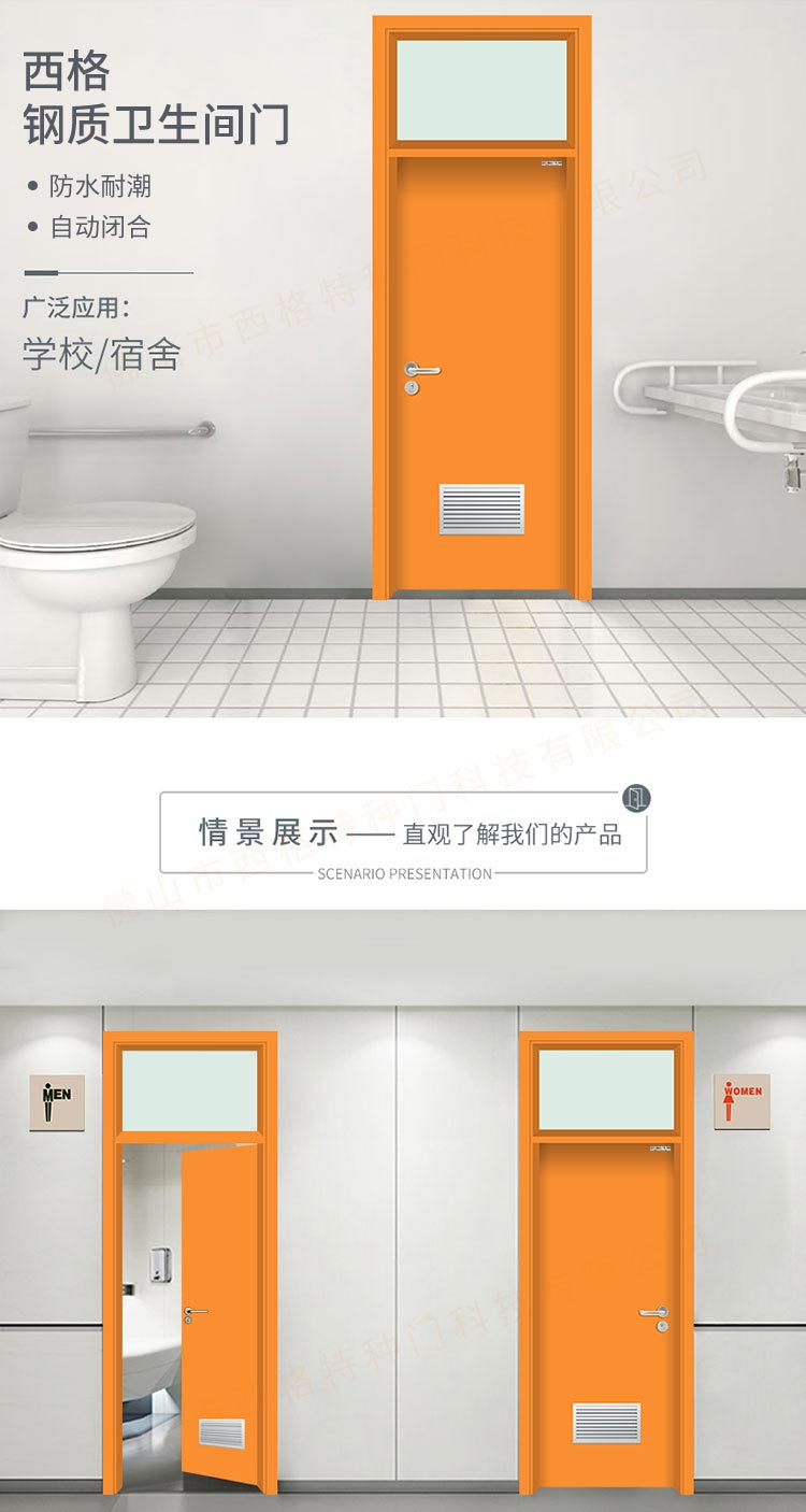 产品简介:chnsige西格特种门,专业生产学校门,学校卫生间门,学校洗手间门,钢质洗手间门,多钟款式、颜色,尺寸可定制。