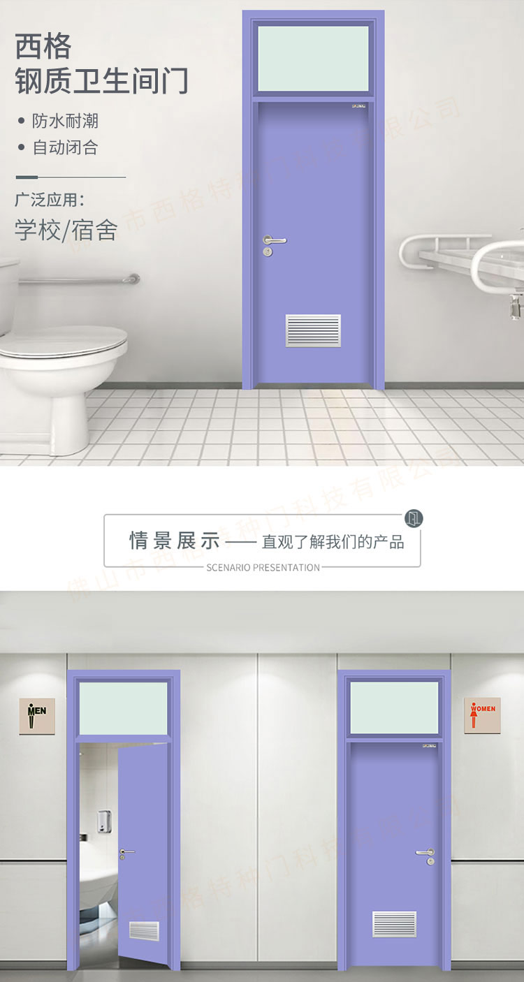 产品简介:chnsige西格特种门,专业生产学校门,学校卫生间门,学校洗手间门,钢质洗手间门,多钟款式、颜色,尺寸可定制。