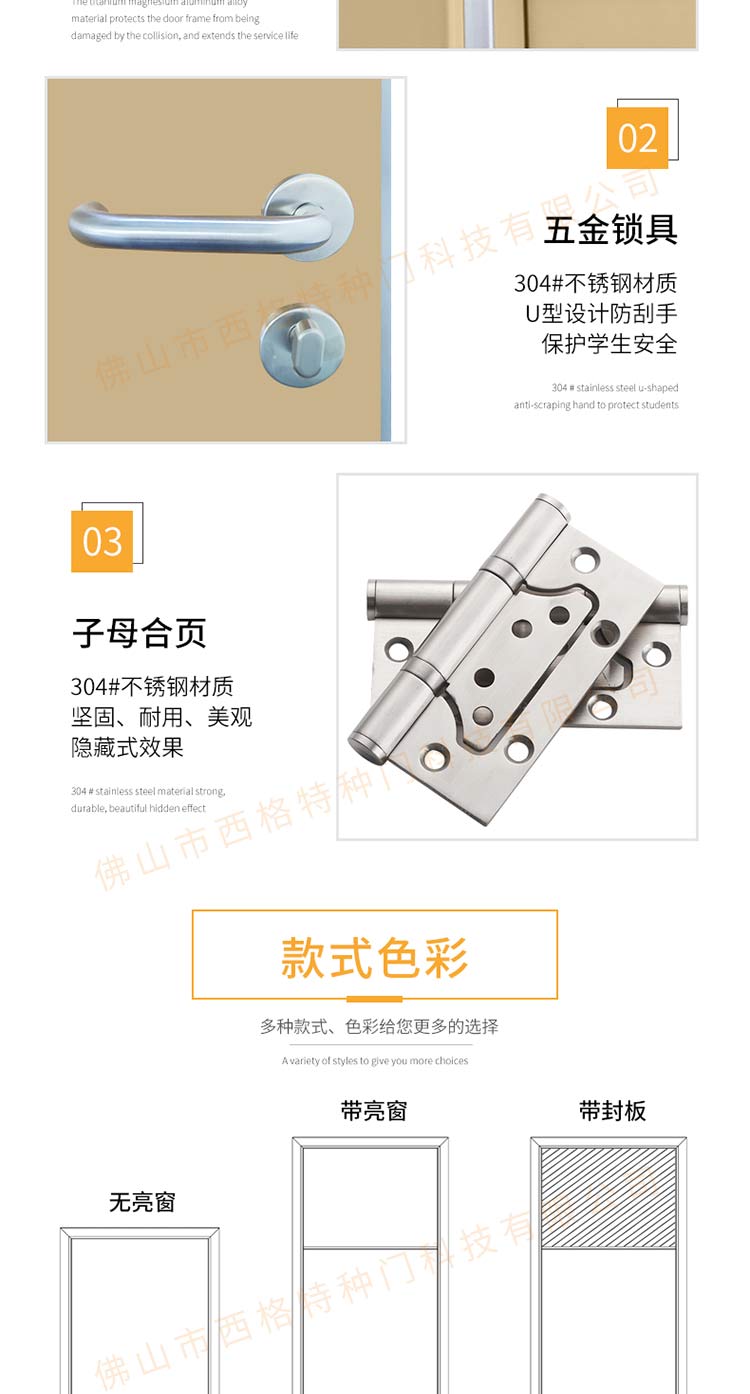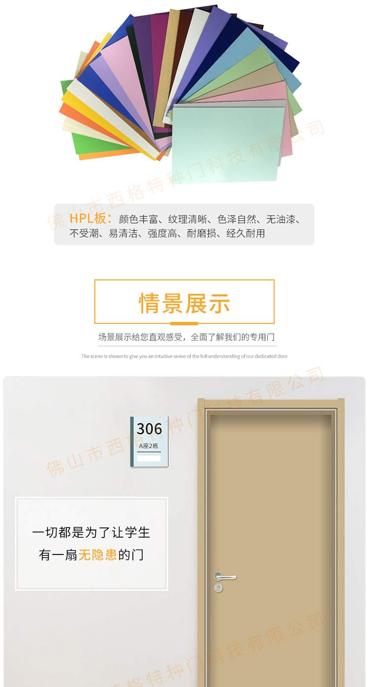 产品简介:chnsige西格特种门,专业生产学校宿舍门,木质学校宿舍门,学校宿舍木门,学生宿舍门,多钟款式、颜色,尺寸可定制。