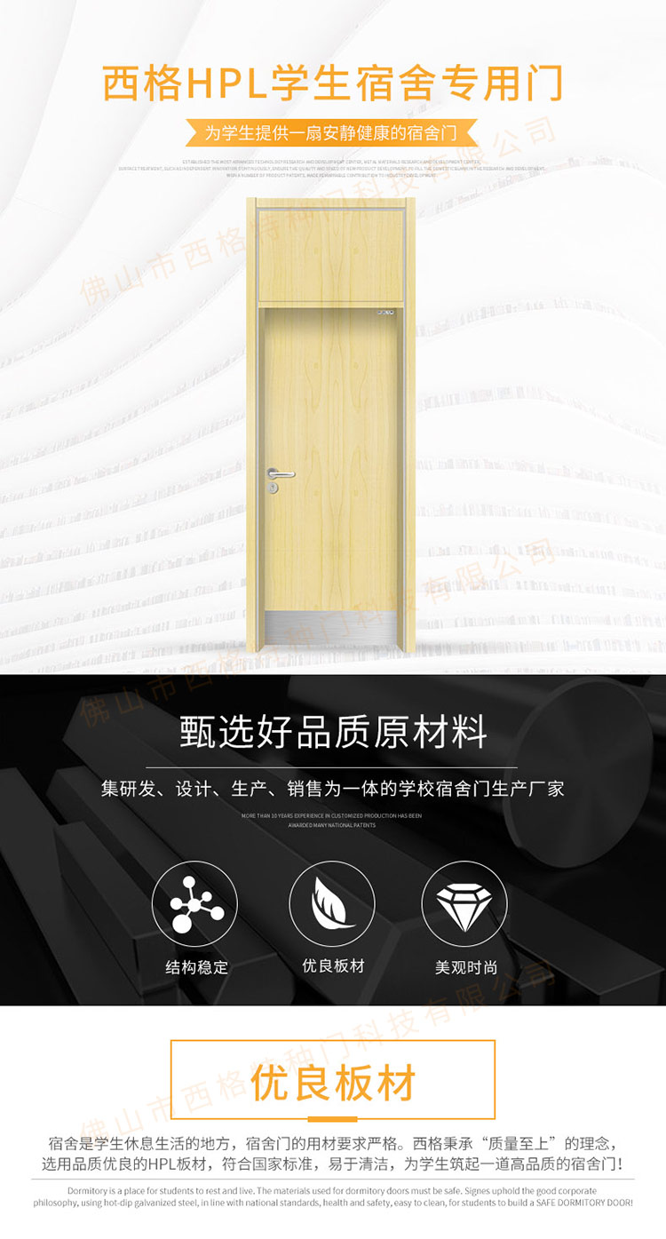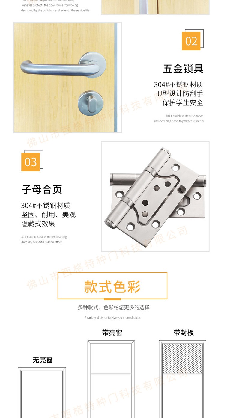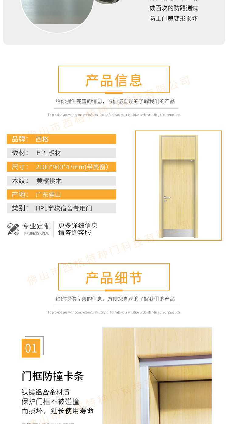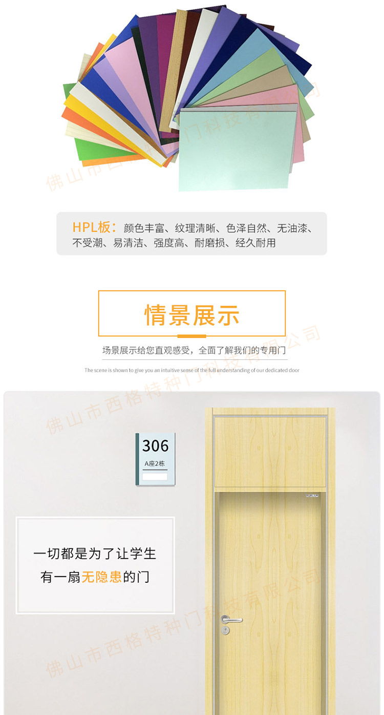 产品简介:chnsige西格特种门,专业生产学校宿舍门,木质学校宿舍门,学校宿舍木门,学生宿舍门,多钟款式、颜色,尺寸可定制。
