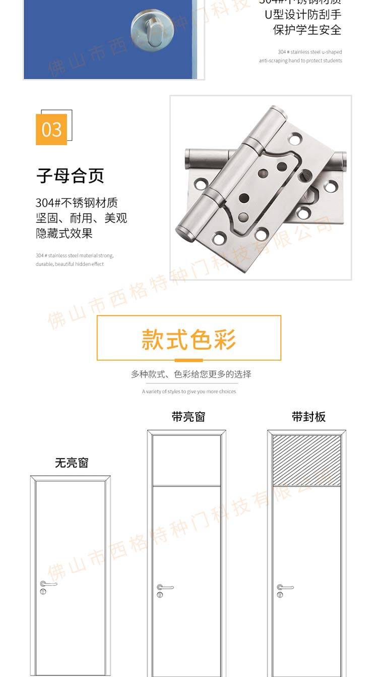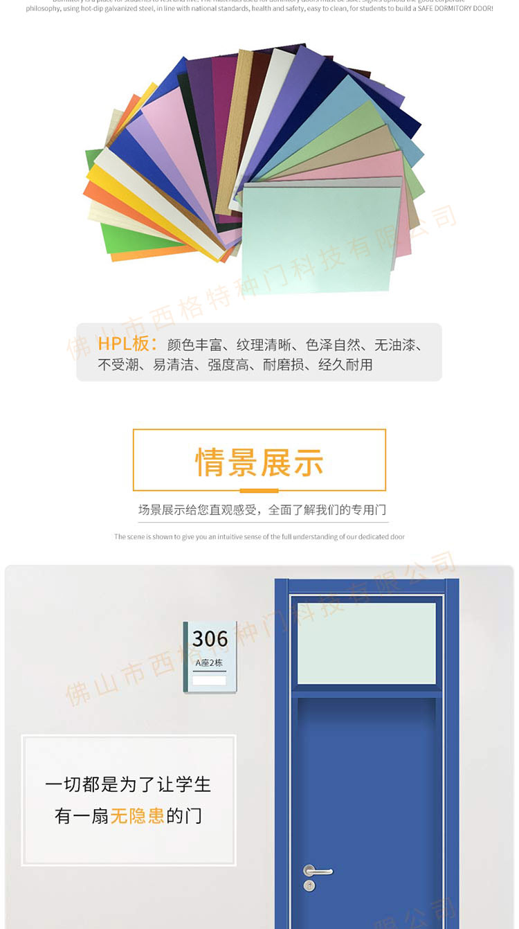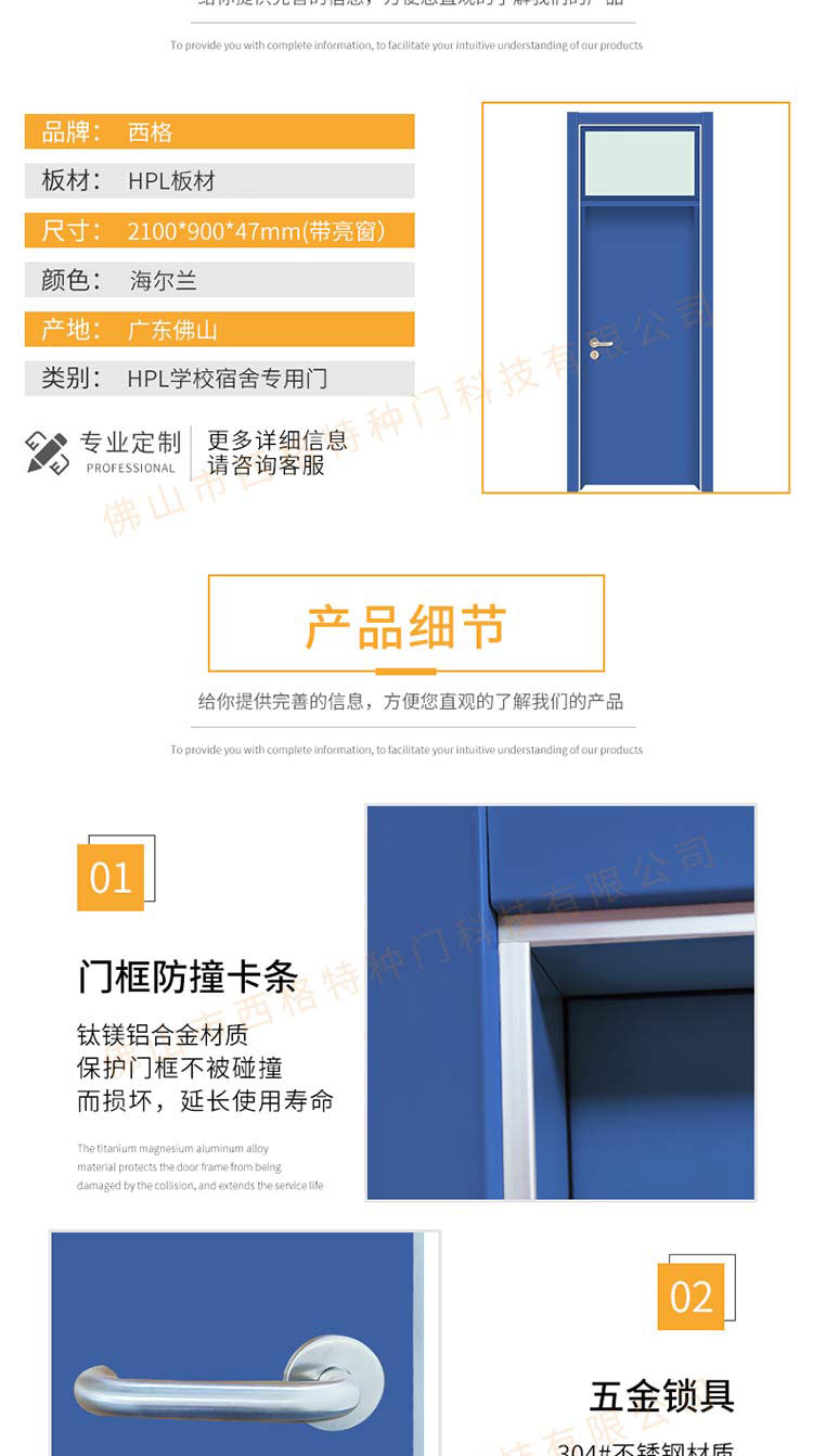 产品简介:chnsige西格特种门,专业生产学校宿舍门,木质学校宿舍门,学校宿舍木门,学生宿舍门,多钟款式、颜色,尺寸可定制。