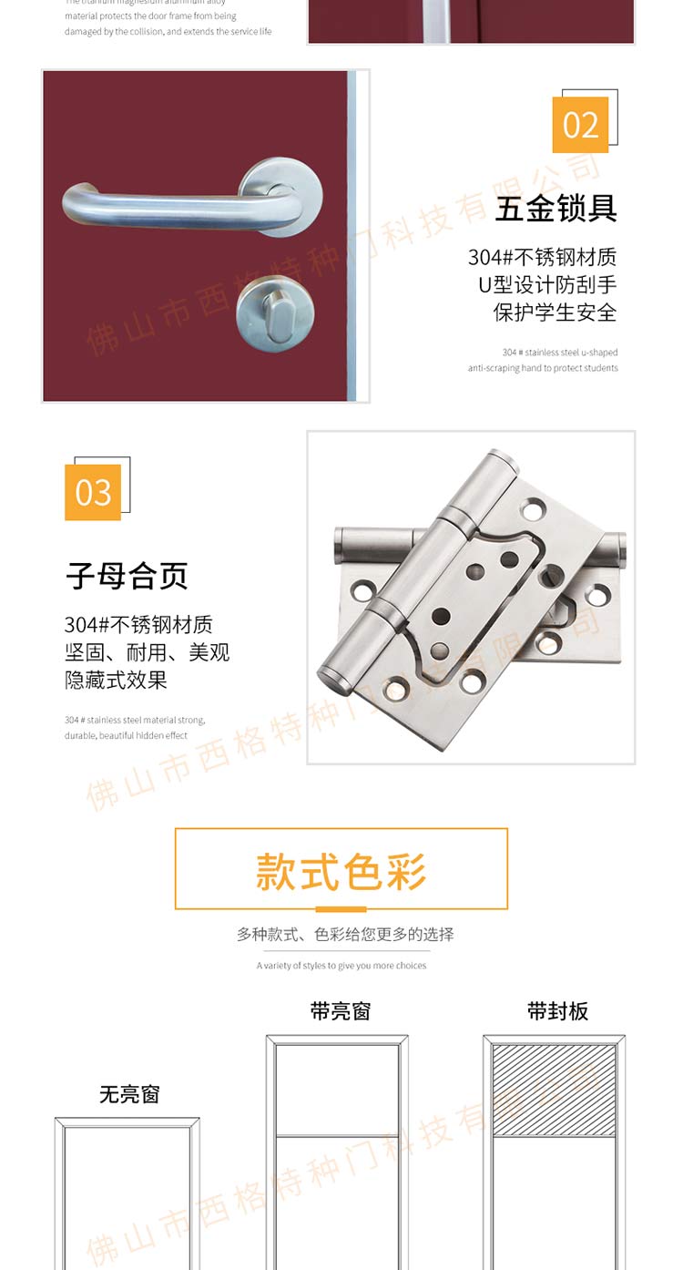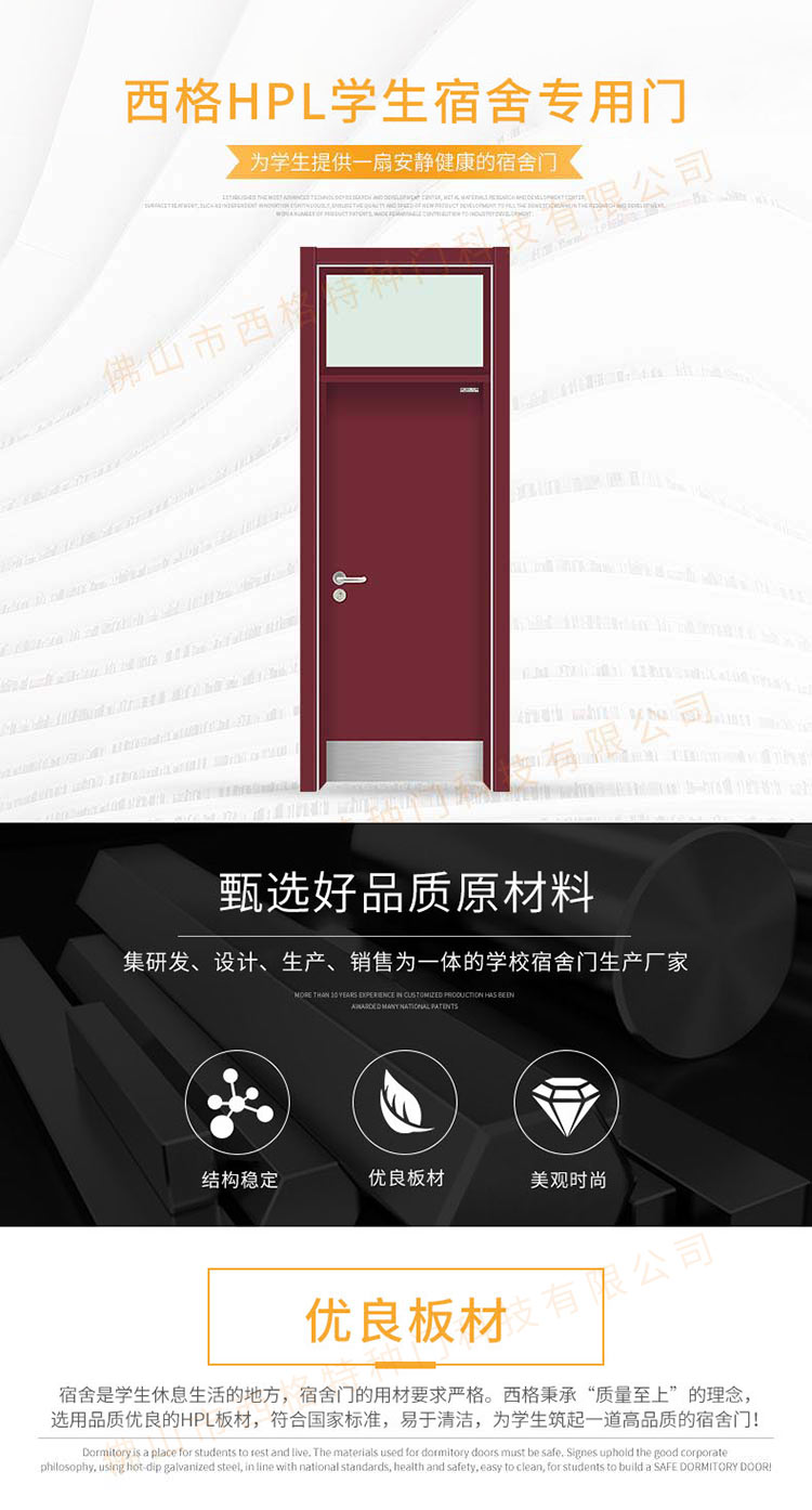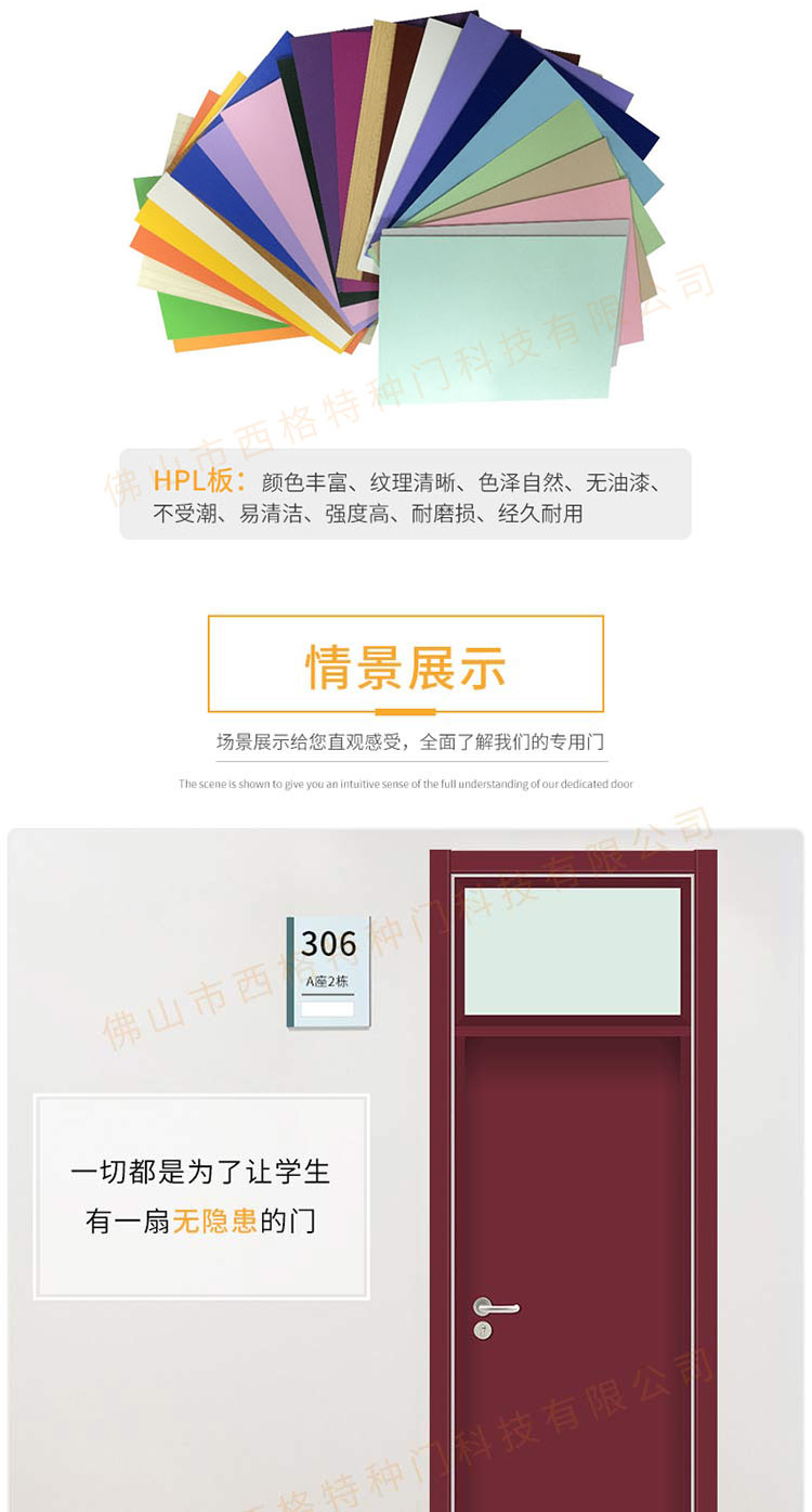 产品简介:chnsige西格特种门,专业生产学校宿舍门,木质学校宿舍门,学校宿舍木门,学生宿舍门,多钟款式、颜色,尺寸可定制。
