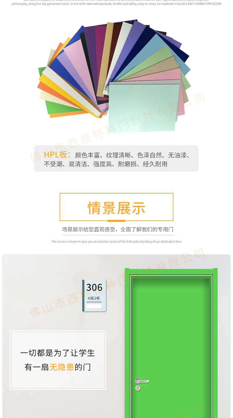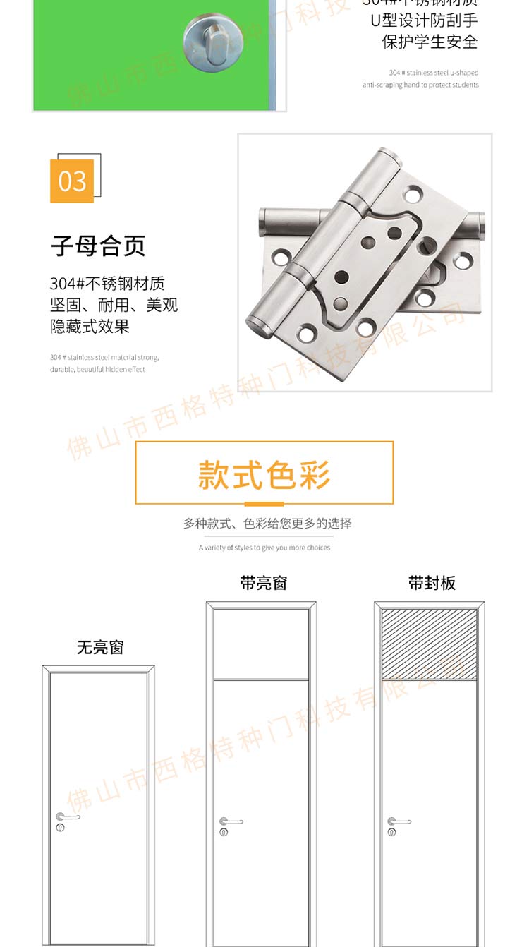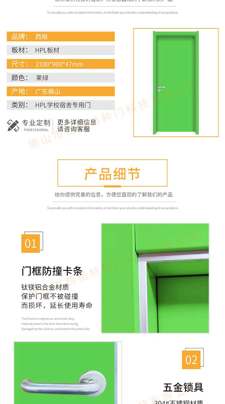 产品简介:chnsige西格特种门,专业生产学校宿舍门,木质学校宿舍门,学校宿舍木门,学生宿舍门,多钟款式、颜色,尺寸可定制。