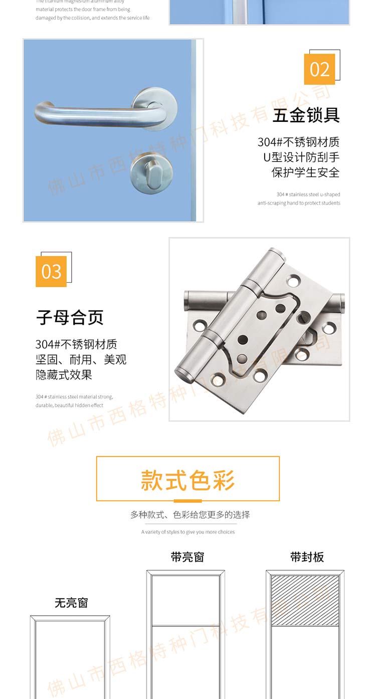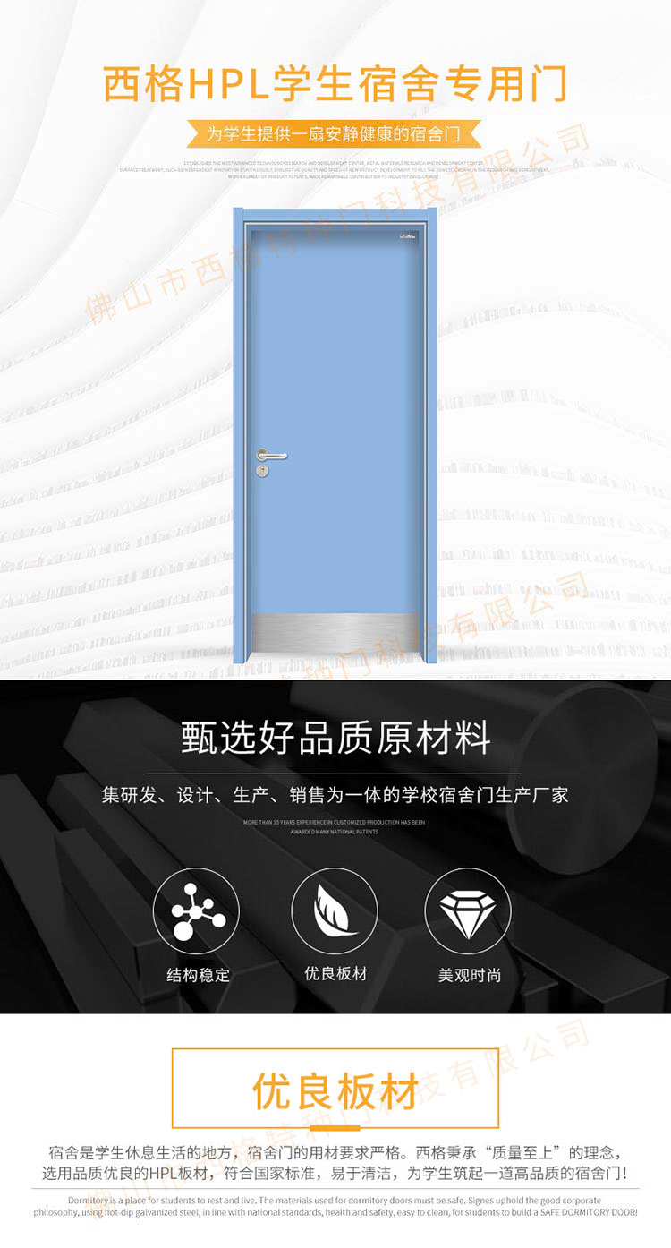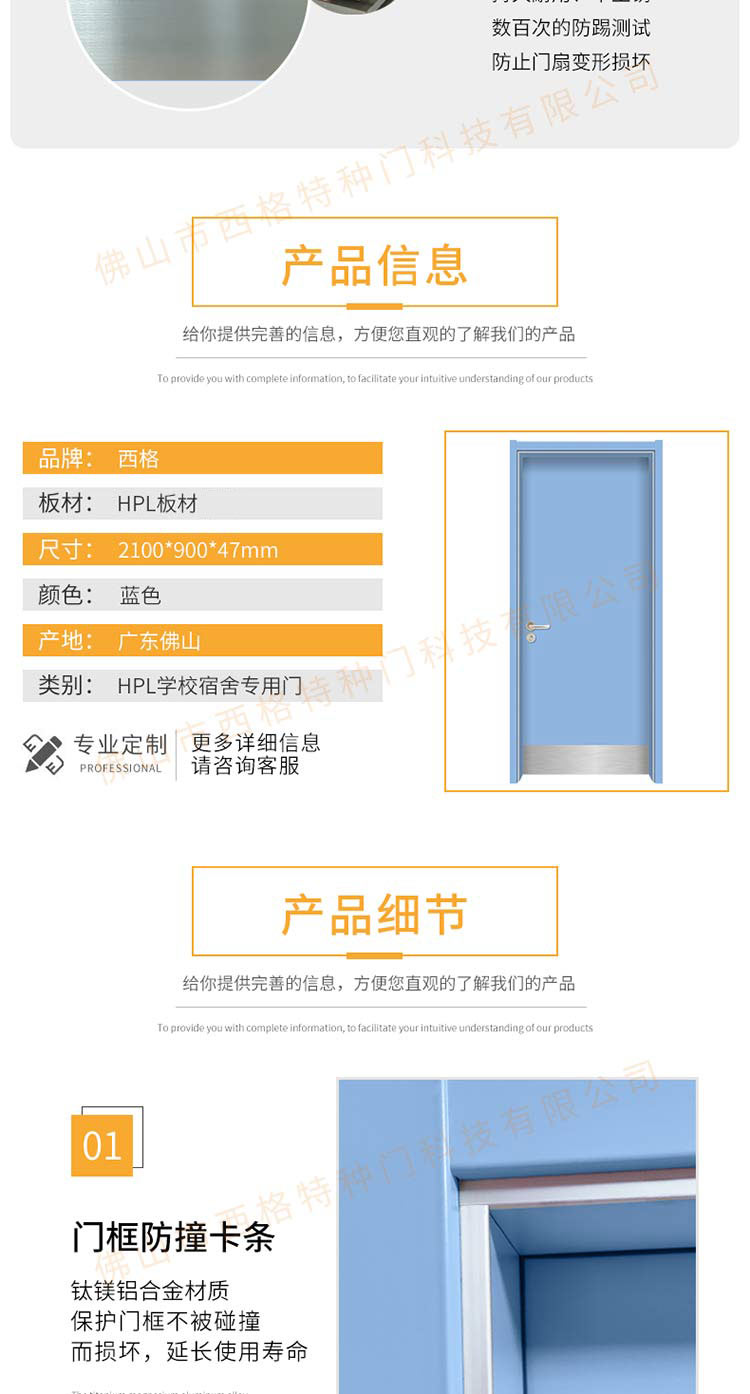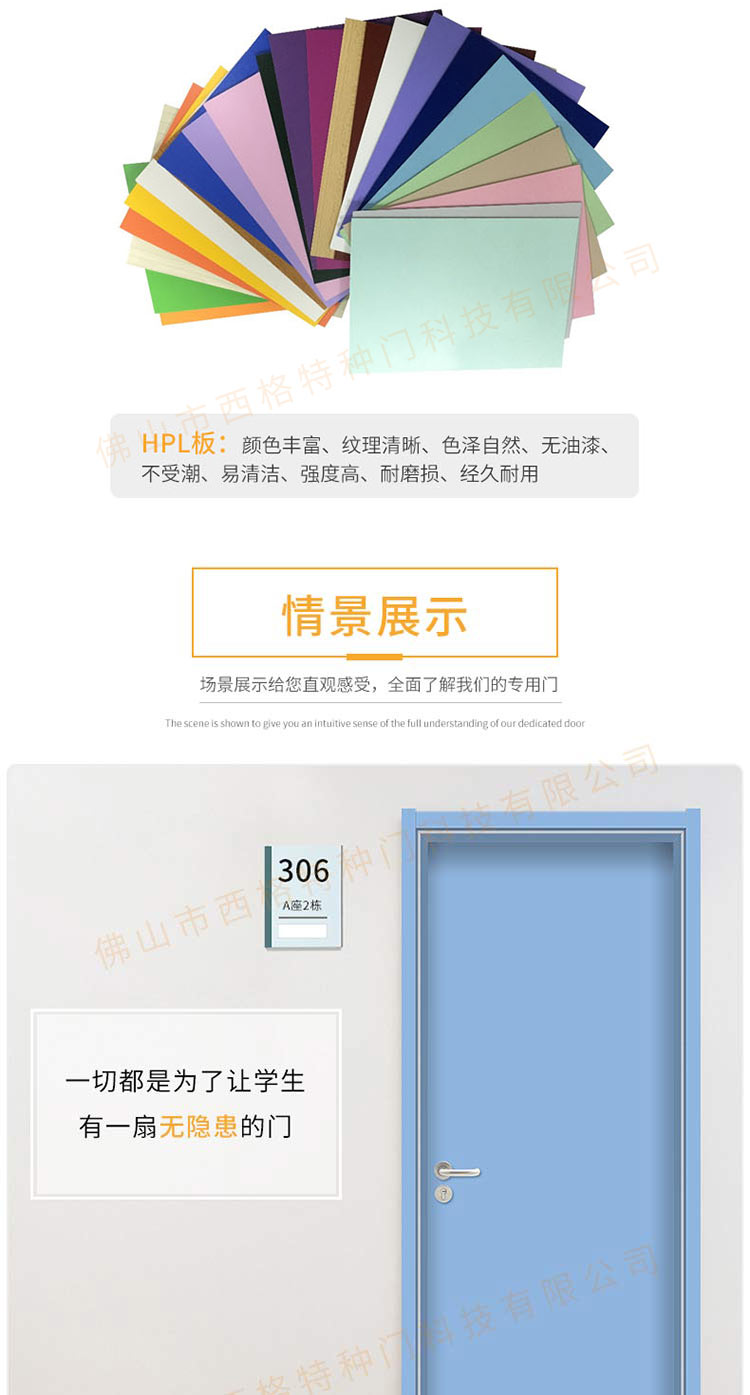 产品简介:chnsige西格特种门,专业生产学校宿舍门,木质学校宿舍门,学校宿舍木门,学生宿舍门,多钟款式、颜色,尺寸可定制。