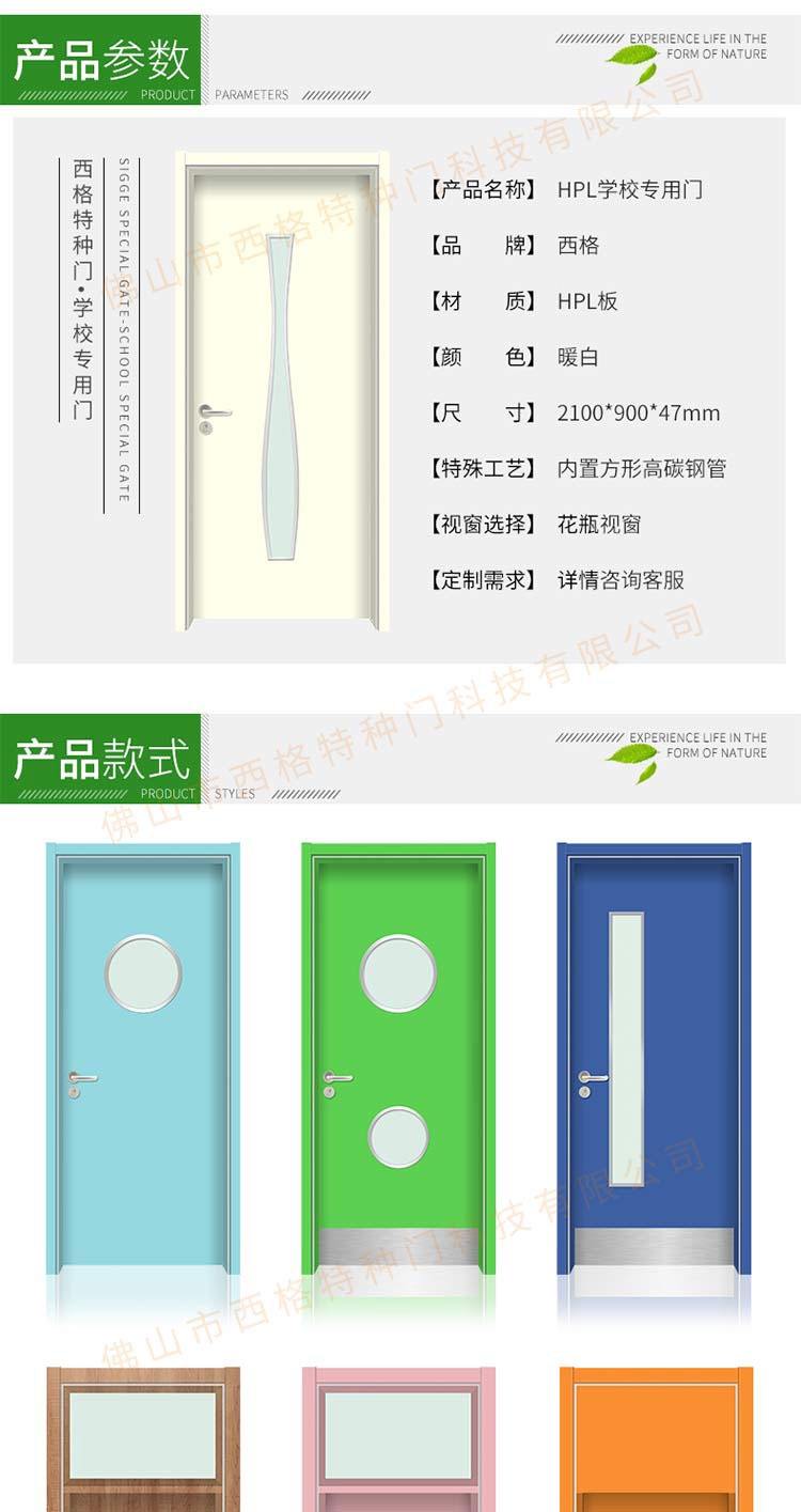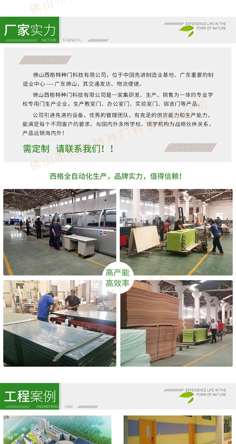 产品简介:chnsige西格特种门,专业生产教室门,学校教室门,教室门木门,培训班门,培训学校门,多钟款式、颜色,尺寸可定制。