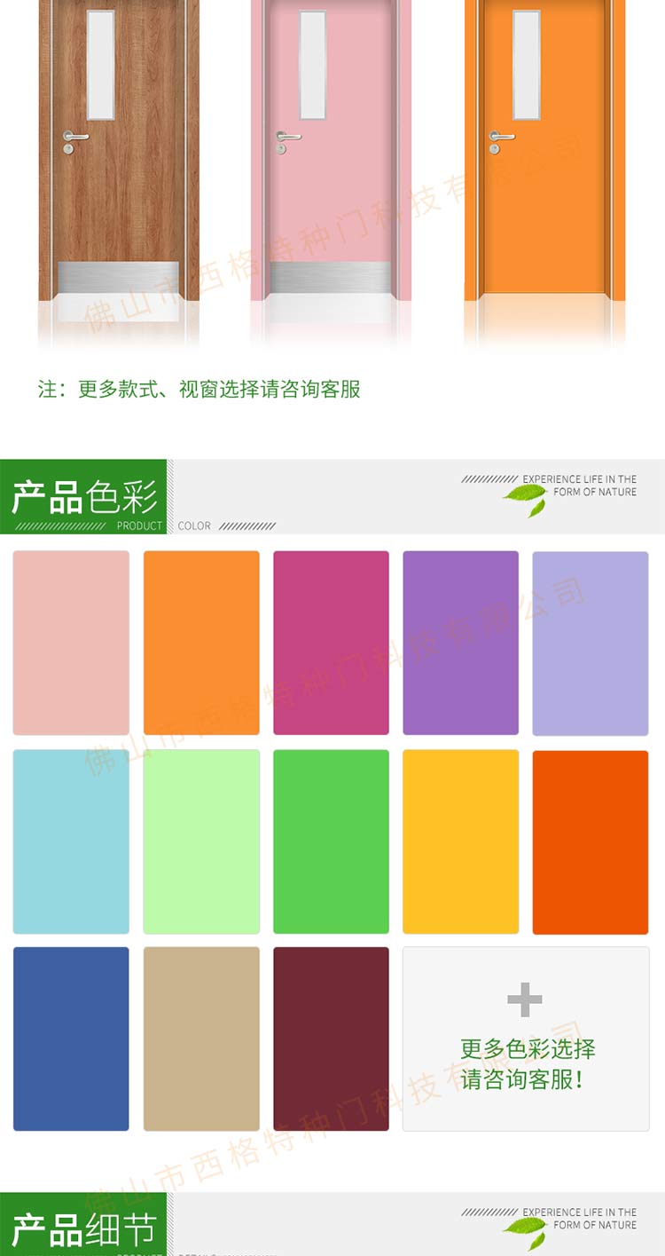 产品简介:chnsige西格特种门,专业生产教室门,学校教室门,教室门木门,培训班门,培训学校门,多钟款式、颜色,尺寸可定制。