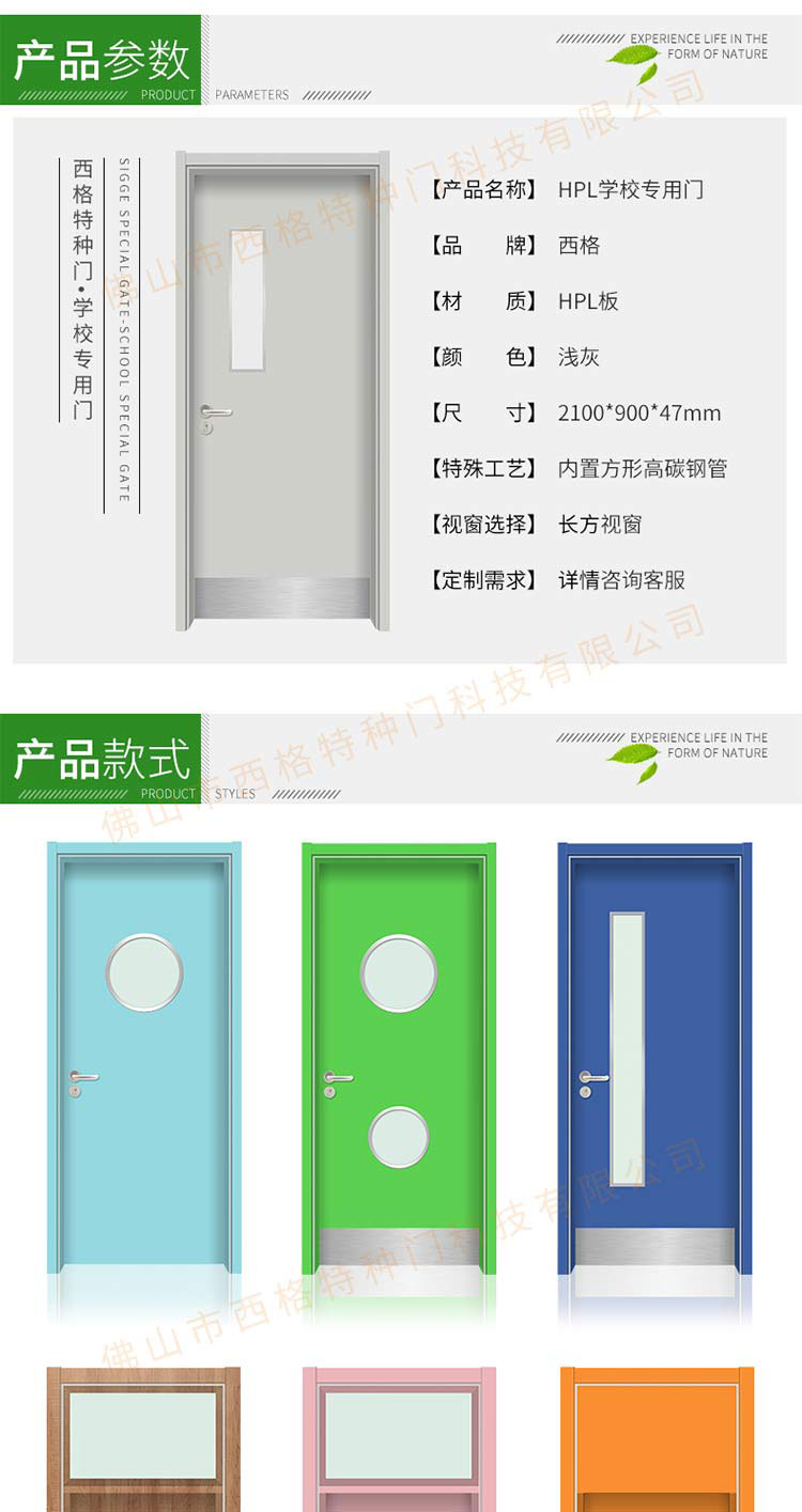 产品简介:chnsige西格特种门,专业生产教室门,学校教室门,教室门木门,培训班门,培训学校门,多钟款式、颜色,尺寸可定制。