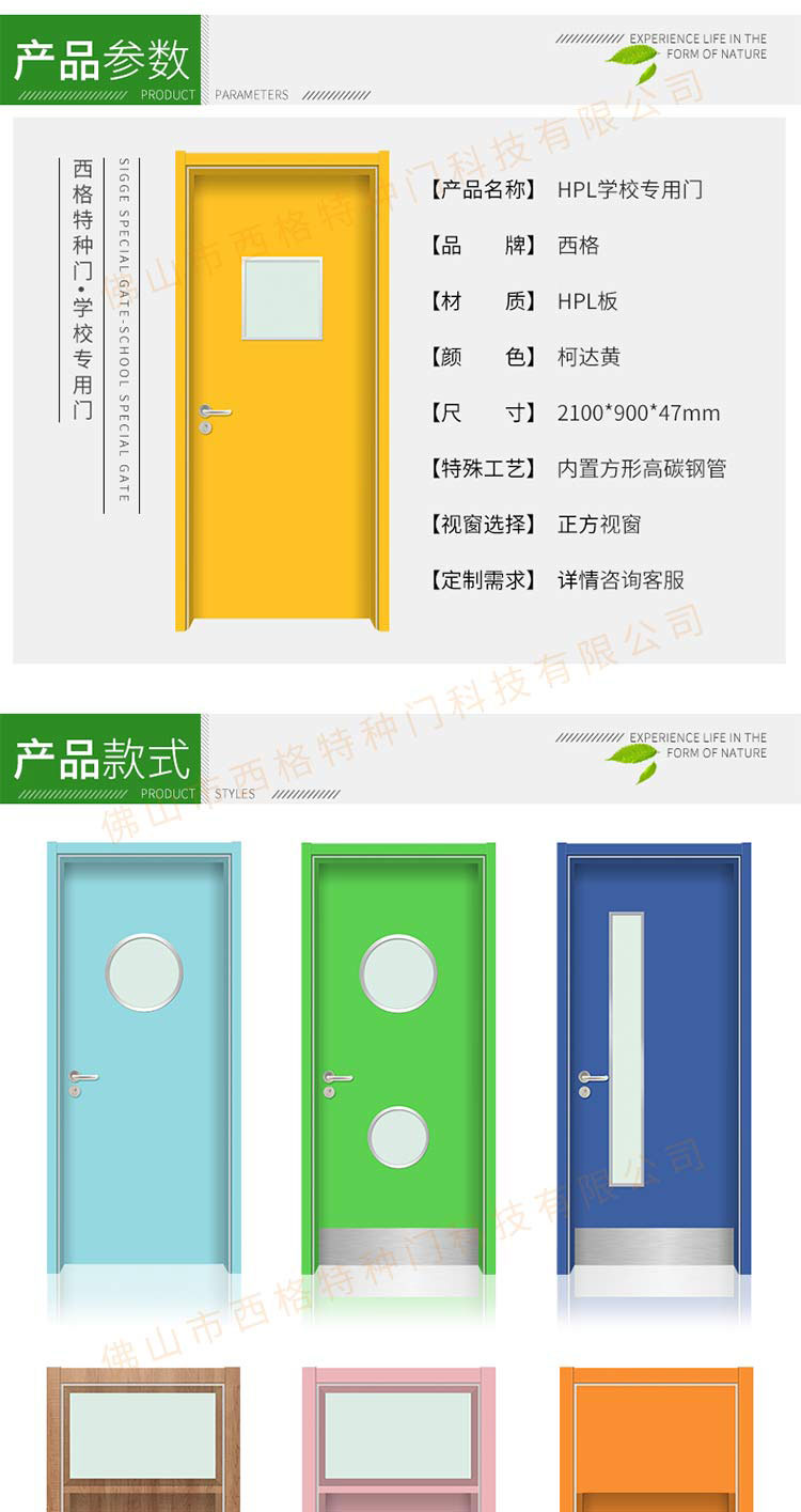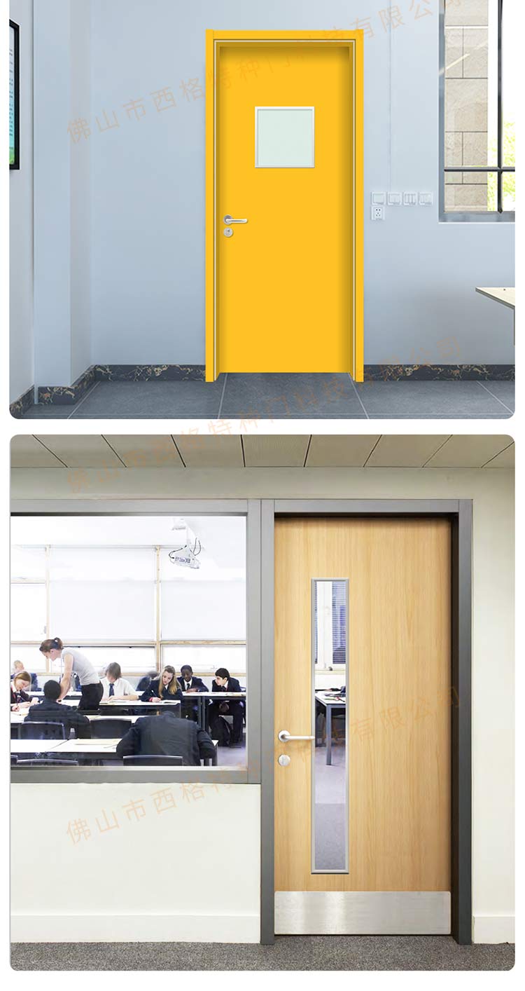 产品简介:chnsige西格特种门,专业生产教室门,学校教室门,教室门木门,培训班门,培训学校门,多钟款式、颜色,尺寸可定制。