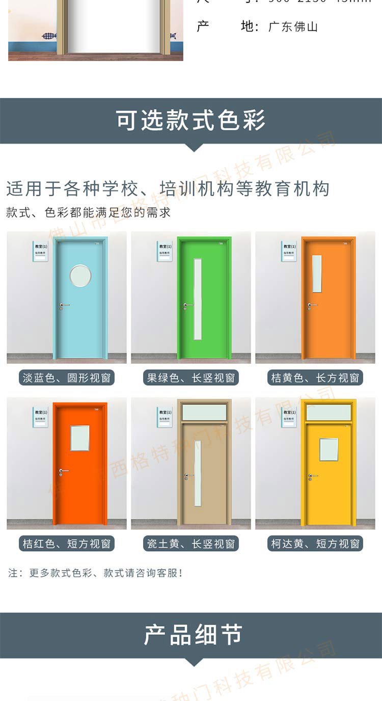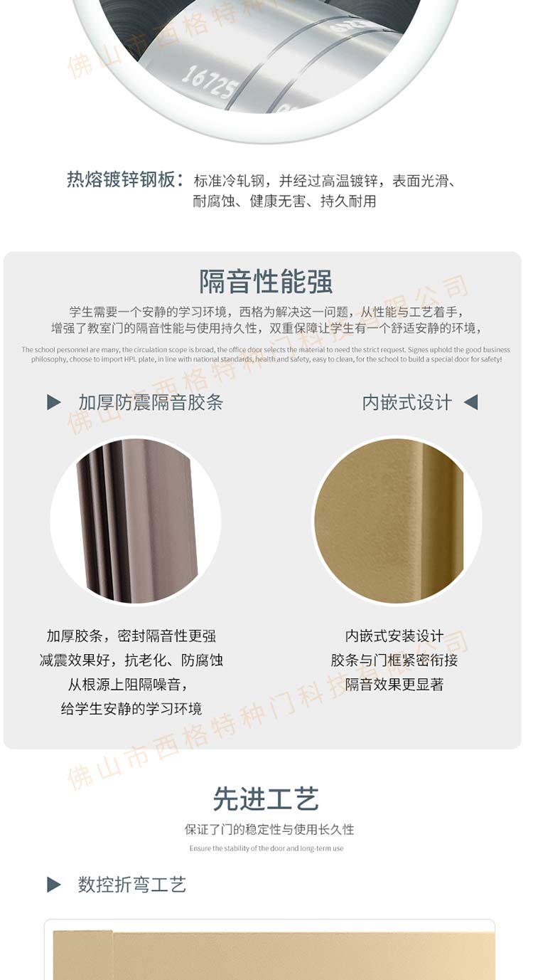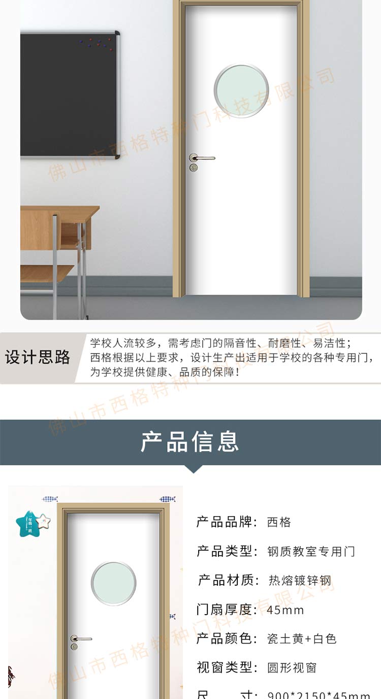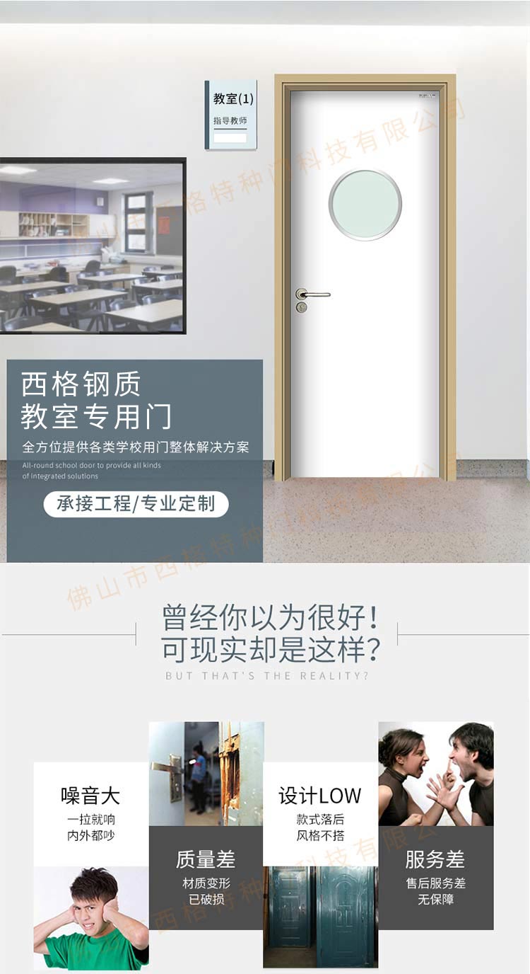产品简介:chnsige西格特种门,专业生产教室门,学校教室门,教室门钢质门,培训班门,培训学校门,多钟款式、颜色,尺寸可定制。