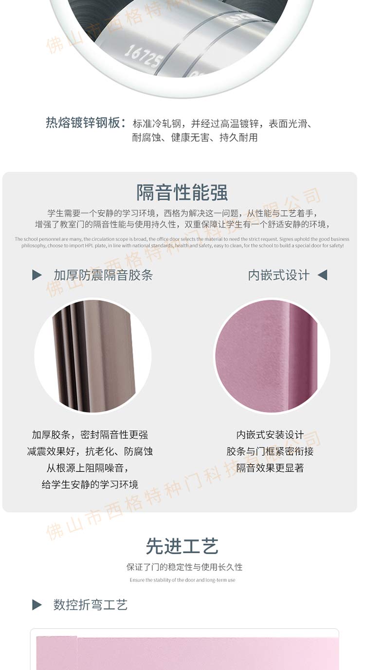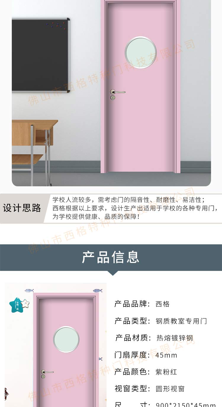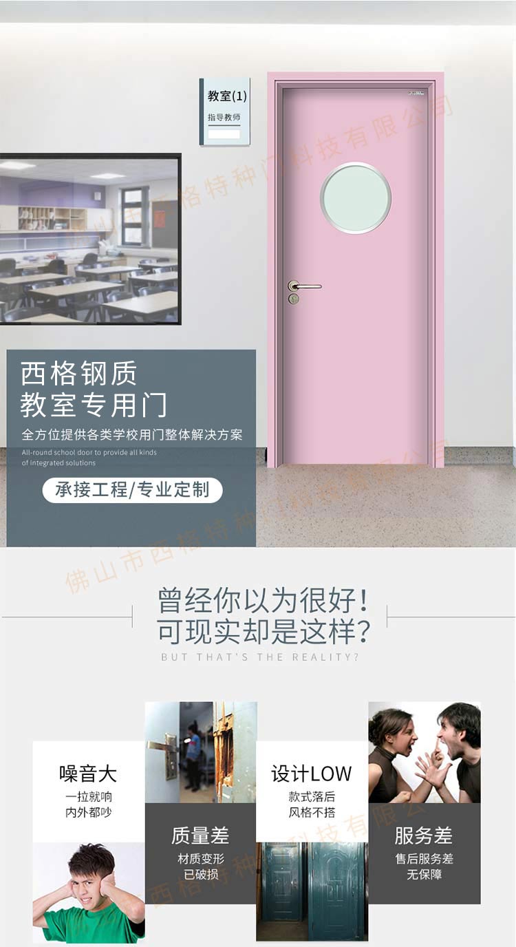 产品简介:chnsige西格特种门,专业生产教室门,学校教室门,教室门钢质门,培训班门,培训学校门,多钟款式、颜色,尺寸可定制。
