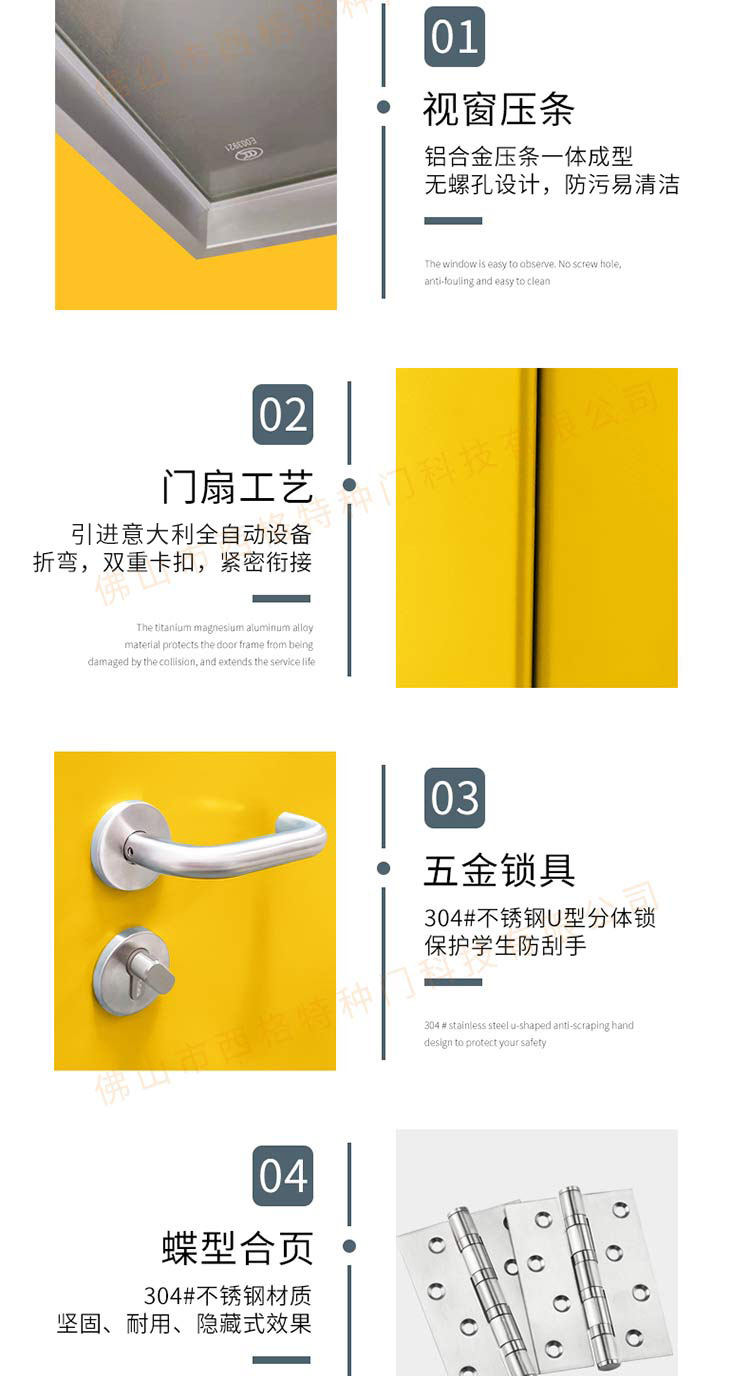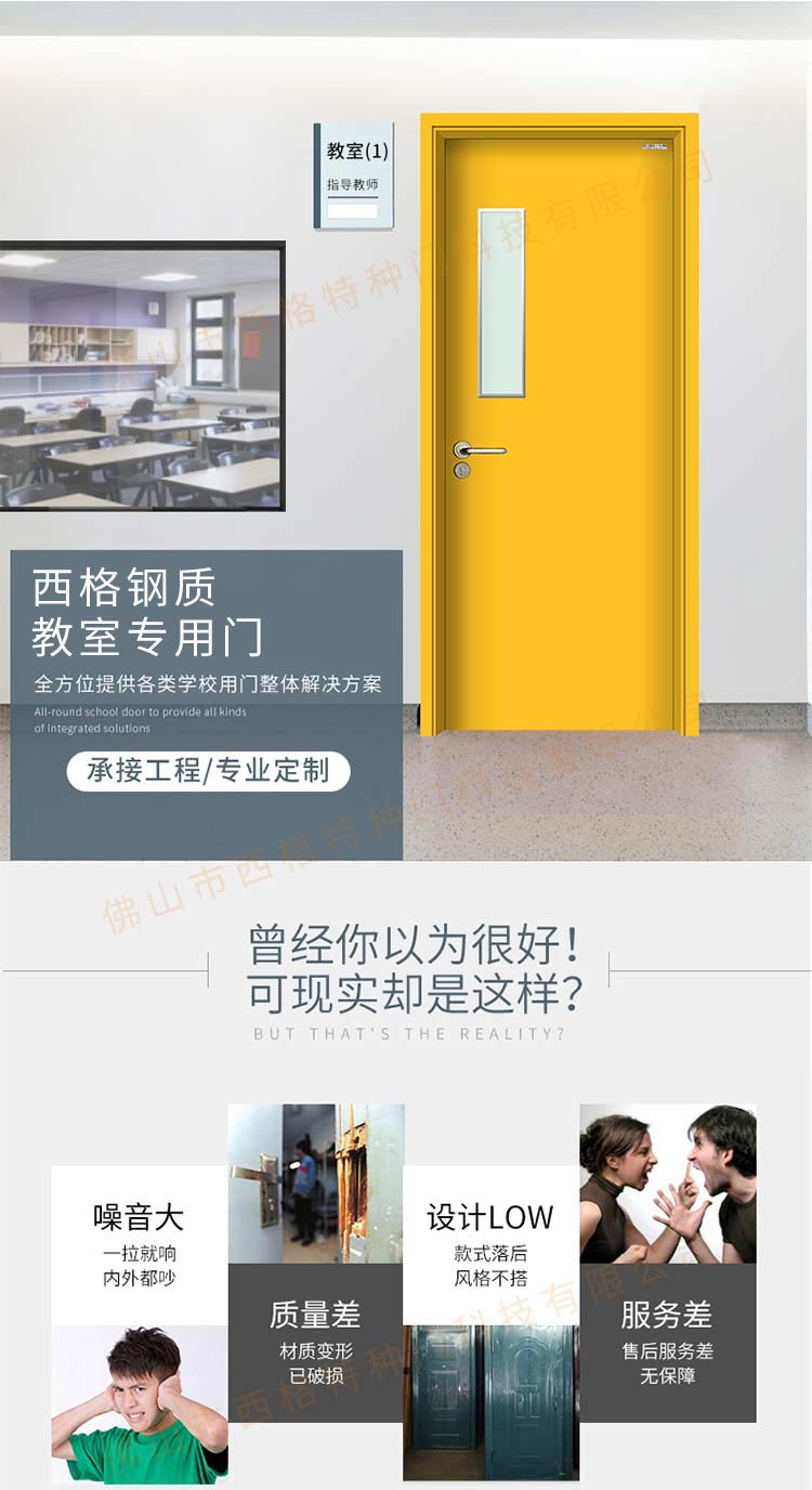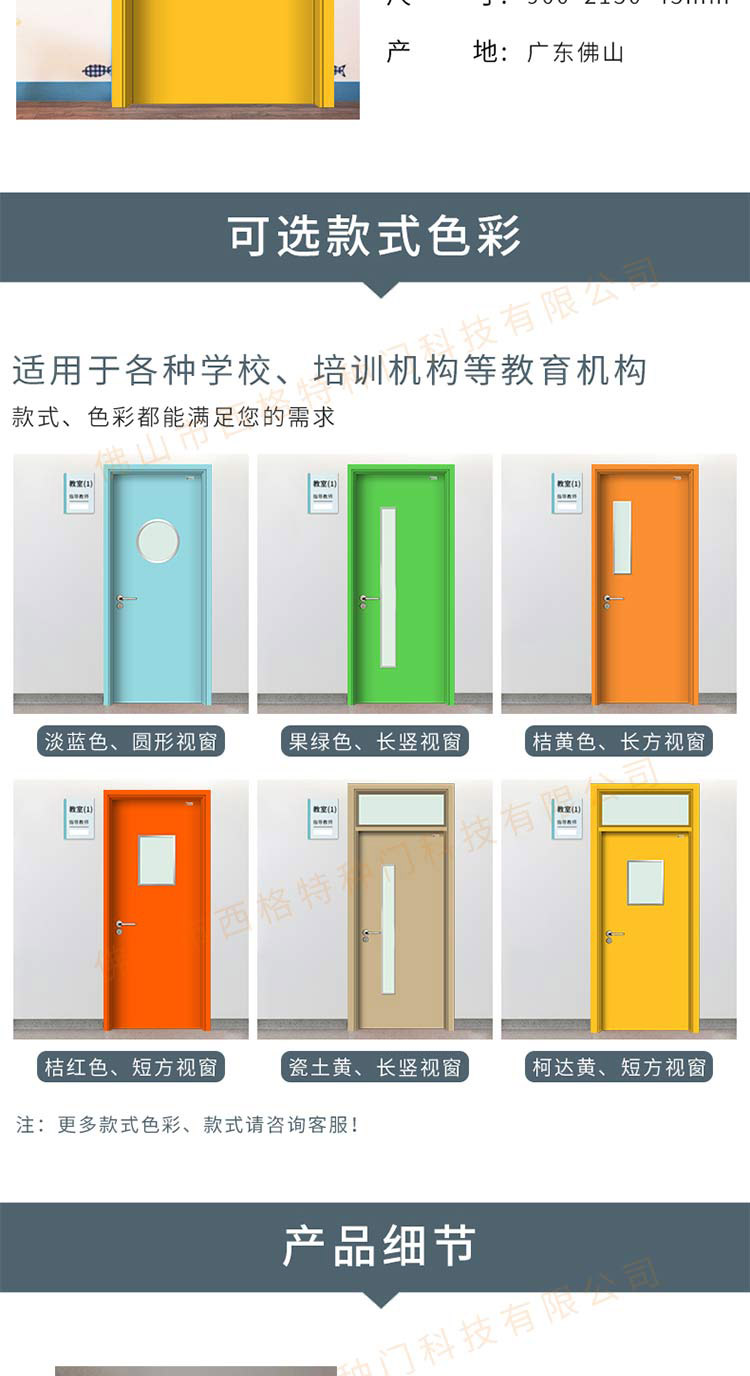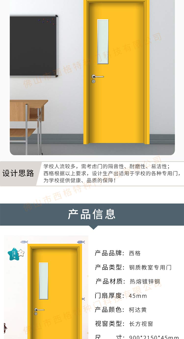 产品简介:chnsige西格特种门,专业生产教室门,学校教室门,教室门钢质门,培训班门,培训学校门,多钟款式、颜色,尺寸可定制。