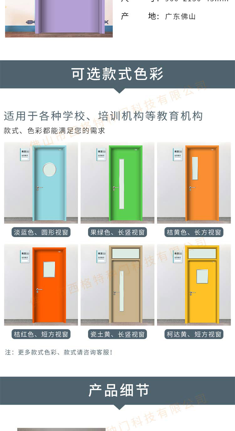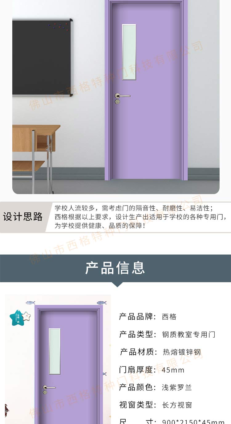 产品简介:chnsige西格特种门,专业生产教室门,学校教室门,教室门钢质门,培训班门,培训学校门,多钟款式、颜色,尺寸可定制。