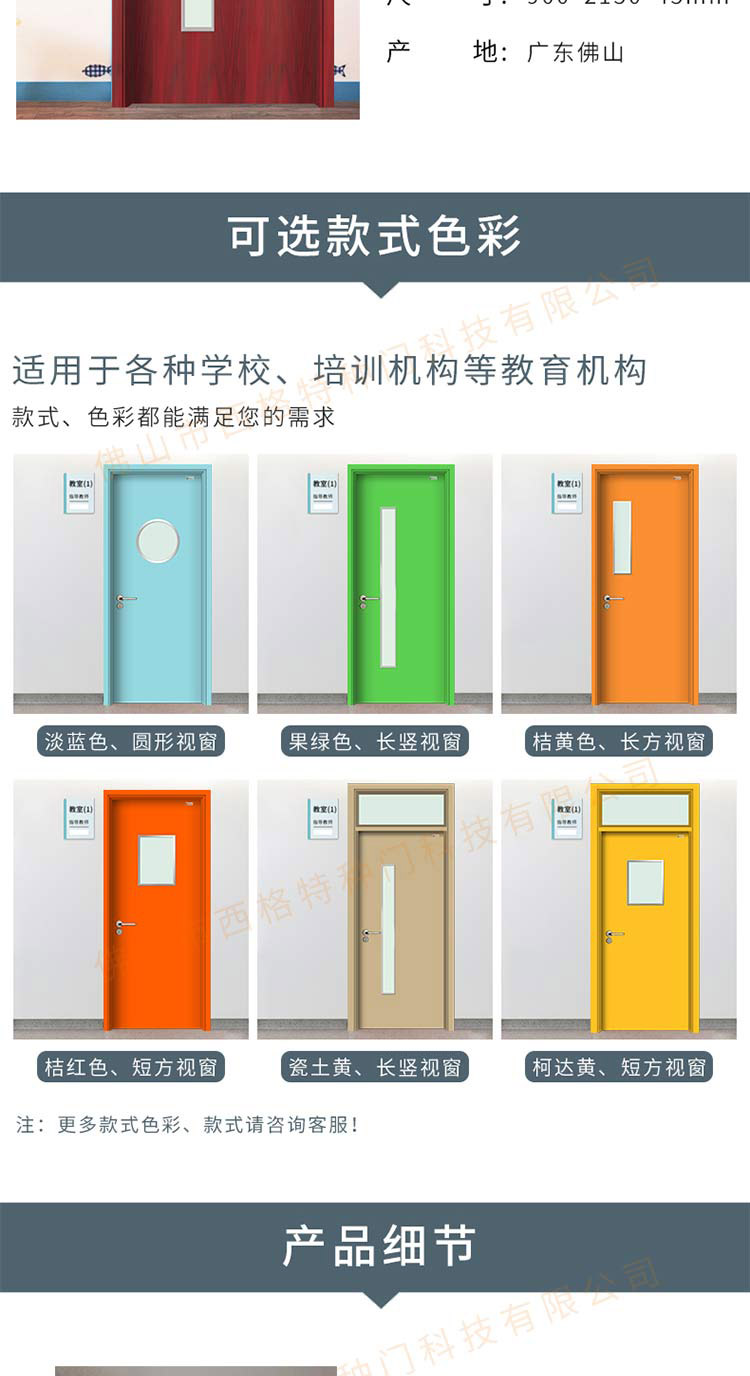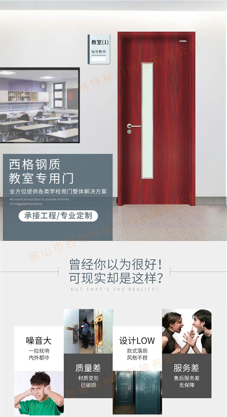 产品简介:chnsige西格特种门,专业生产教室门,学校教室门,教室门钢质门,培训班门,培训学校门,多钟款式、颜色,尺寸可定制。