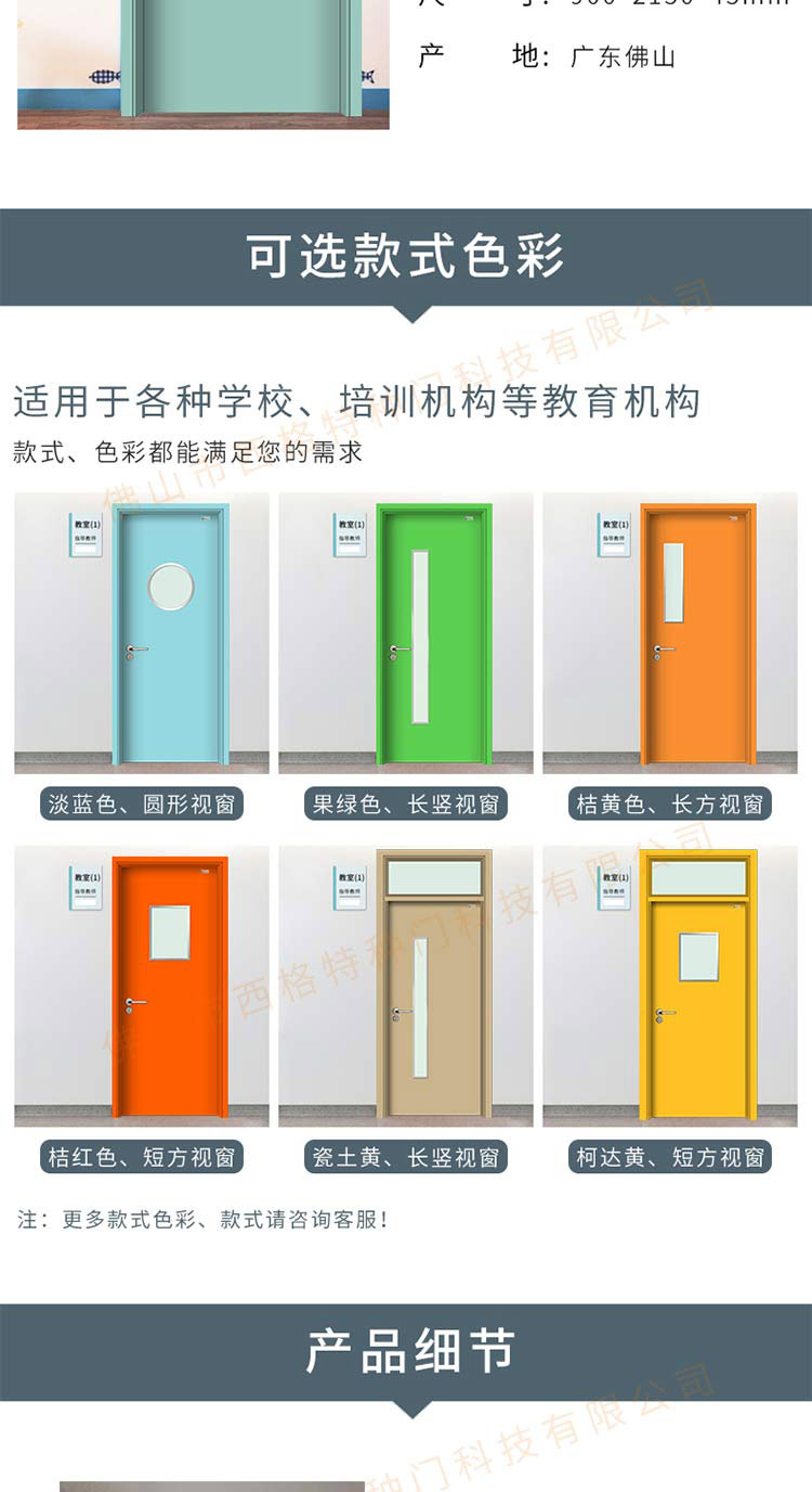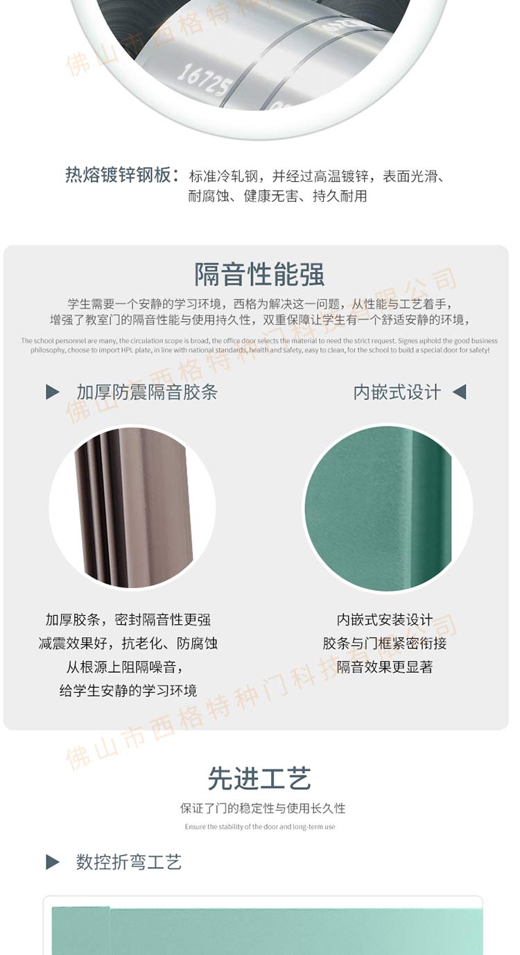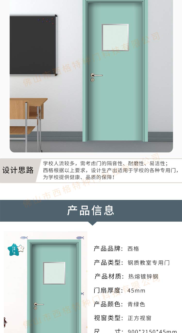 产品简介:chnsige西格特种门,专业生产教室门,学校教室门,教室门钢质门,培训班门,培训学校门,多钟款式、颜色,尺寸可定制。
