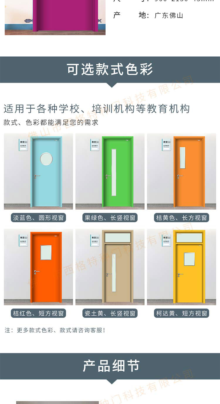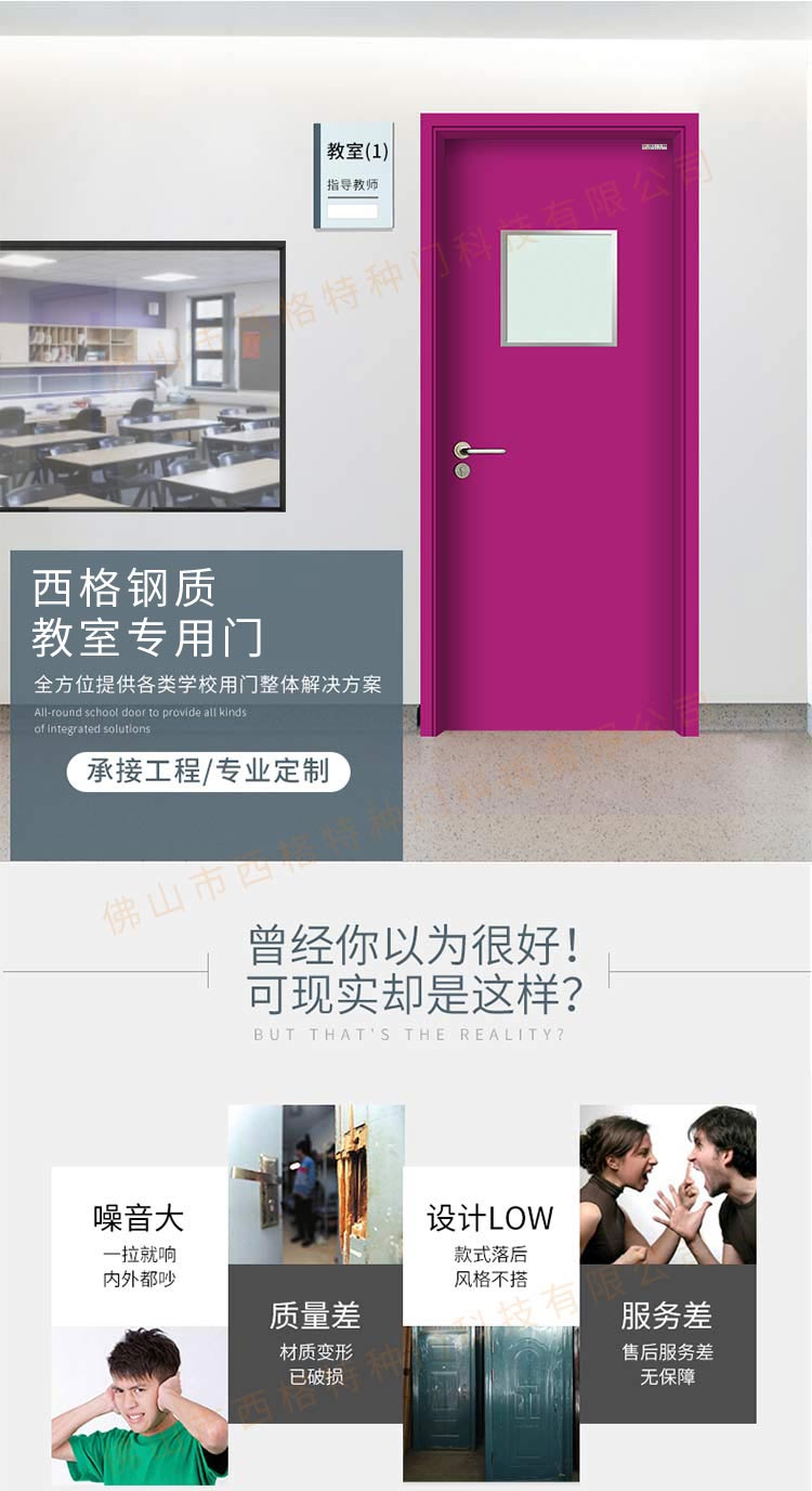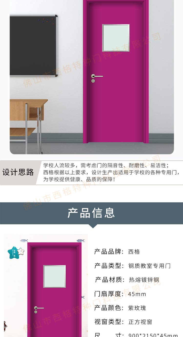 产品简介:chnsige西格特种门,专业生产教室门,学校教室门,教室门钢质门,培训班门,培训学校门,多钟款式、颜色,尺寸可定制。