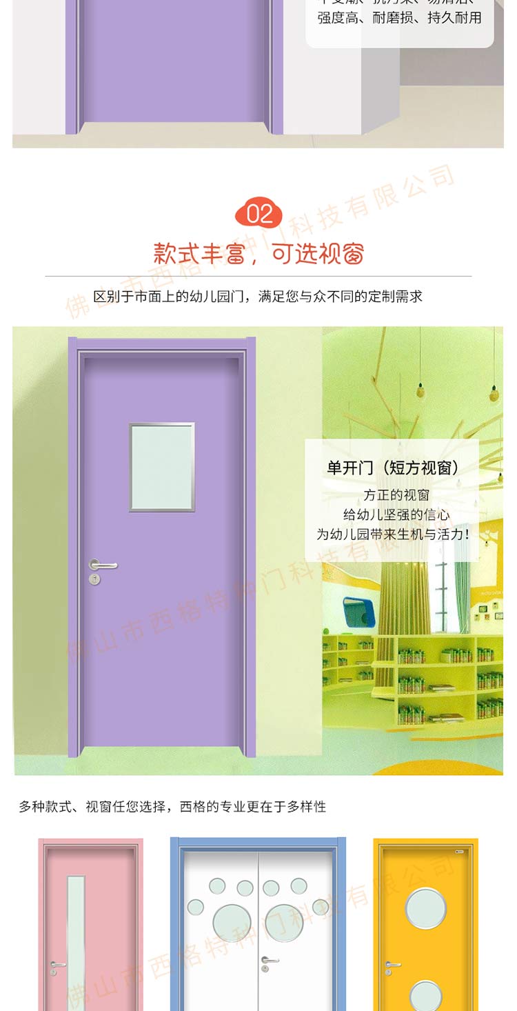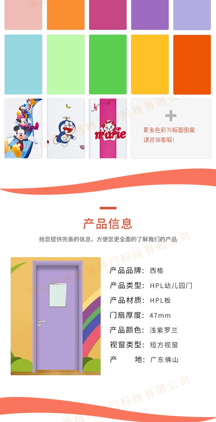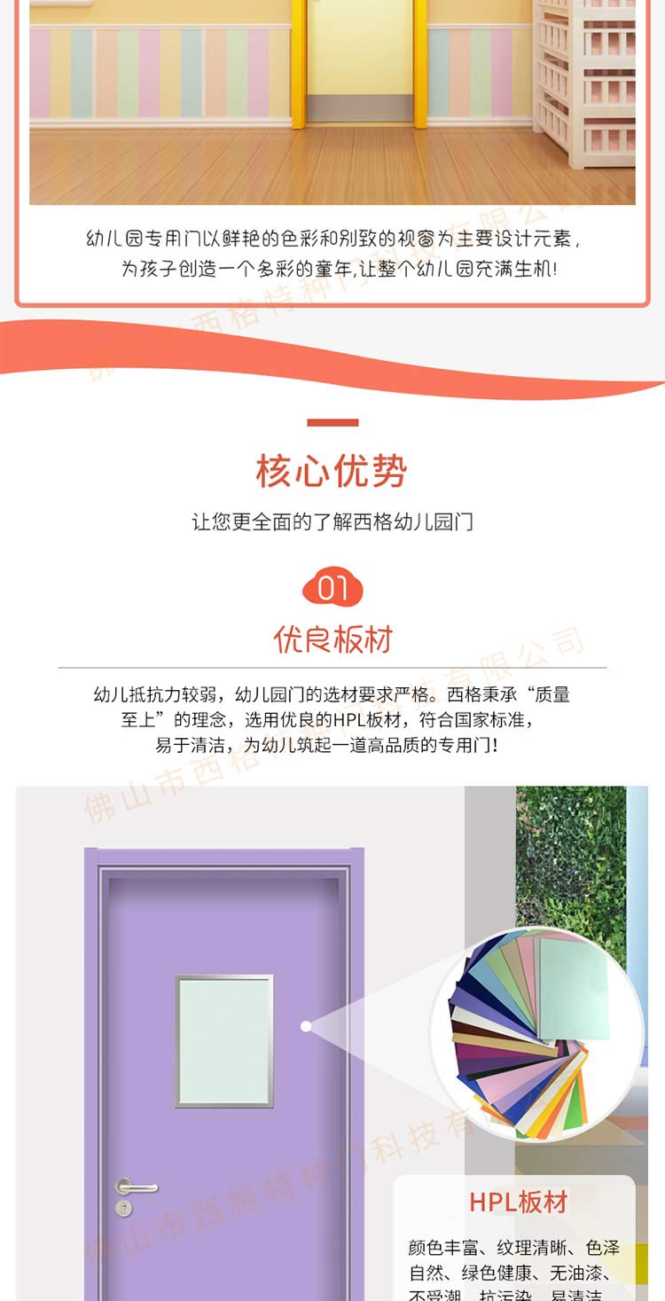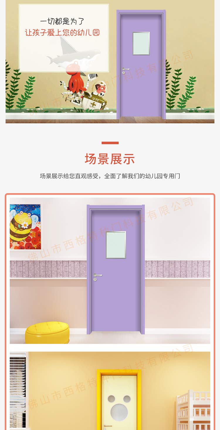 产品简介:chnsige西格特种门,专业生产幼儿园门,木质幼儿园门,幼儿园木门,幼儿园教室门,多钟款式、颜色,尺寸可定制。