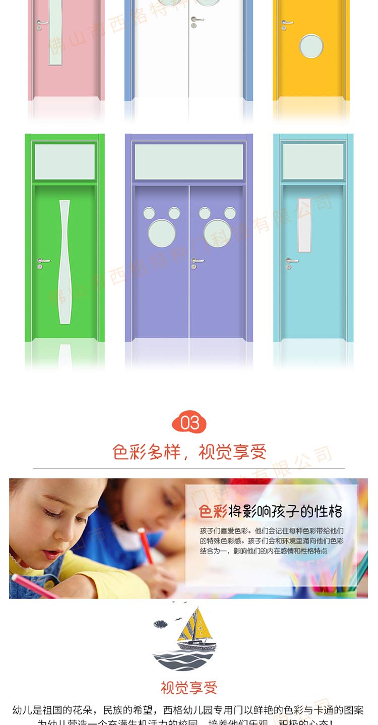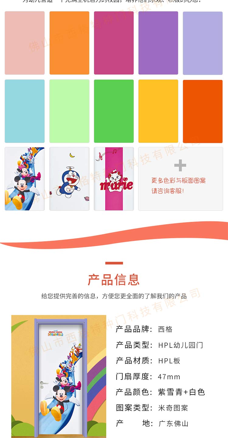 产品简介:chnsige西格特种门,专业生产幼儿园门,木质幼儿园门,幼儿园木门,幼儿园教室门,多钟款式、颜色,尺寸可定制。