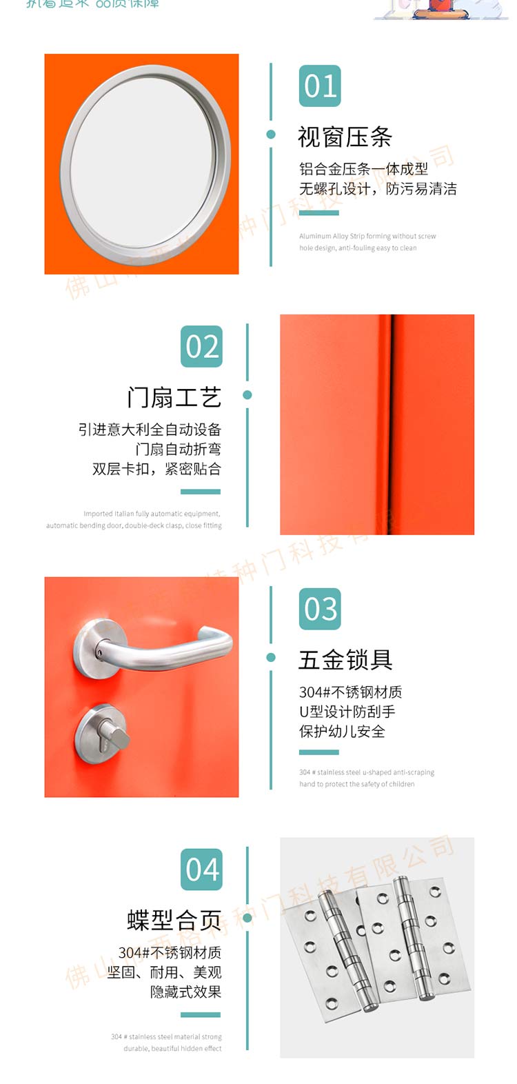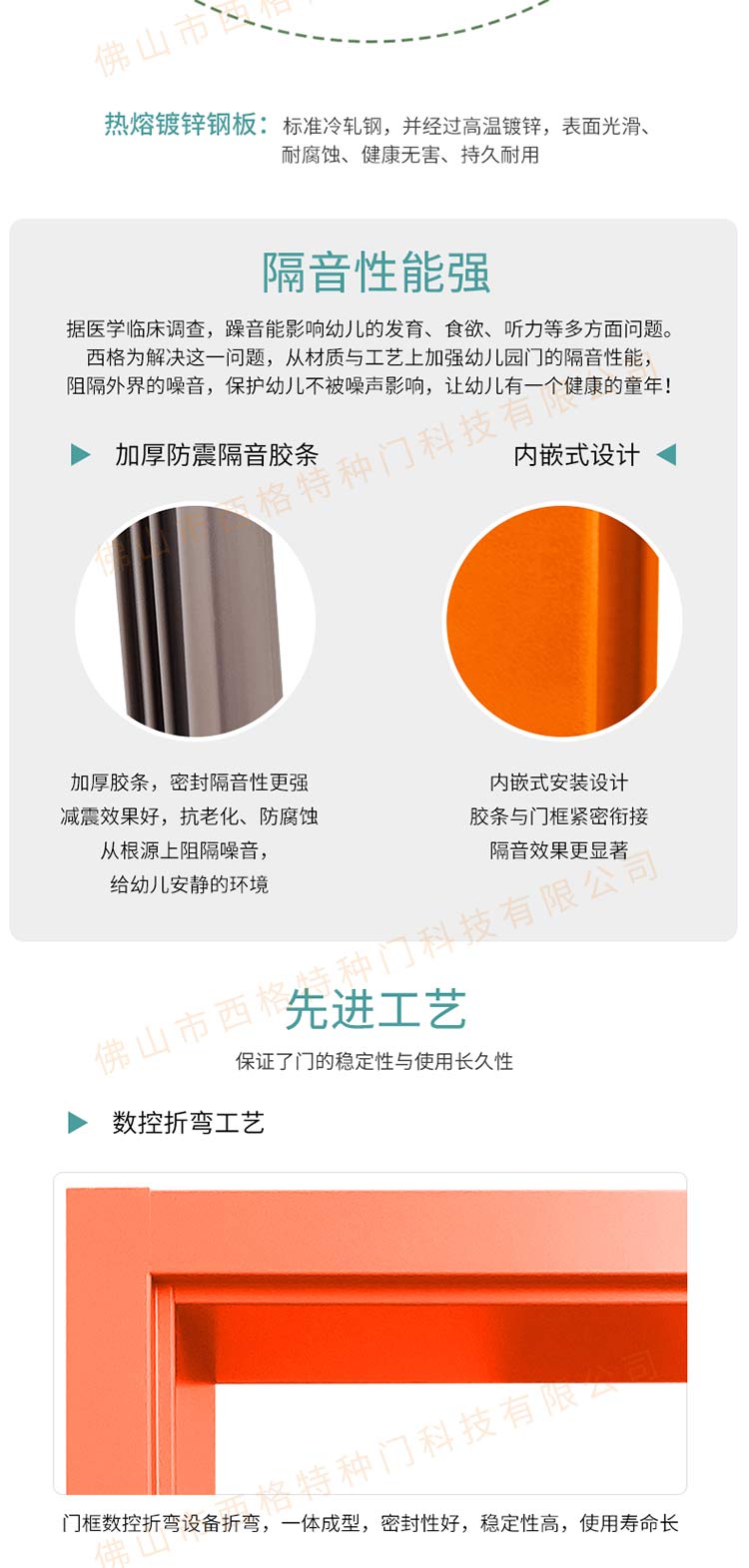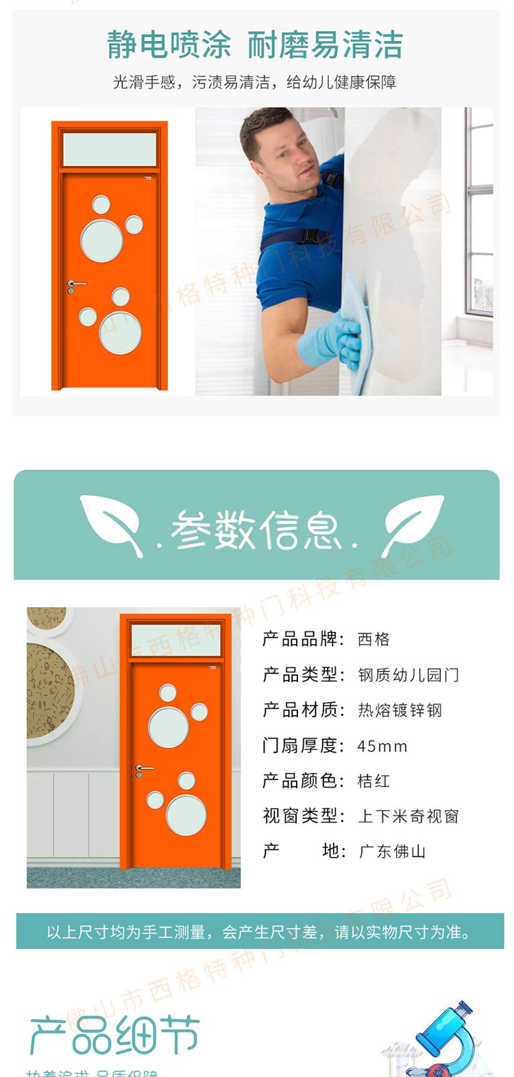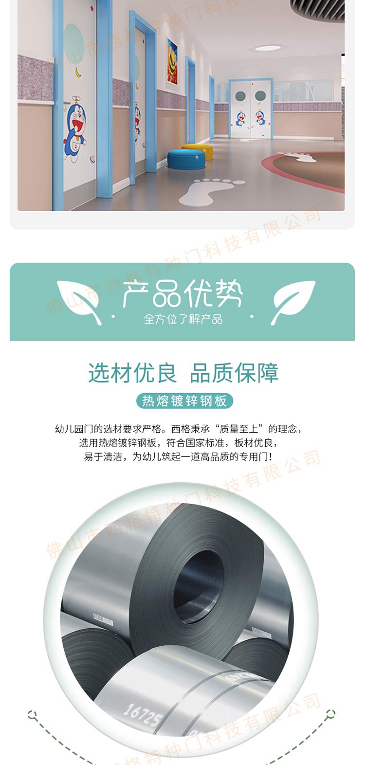 产品简介:chnsige西格特种门,专业生产幼儿园门,幼儿园钢质门,钢质幼儿园门,多钟款式、颜色,尺寸可定制。