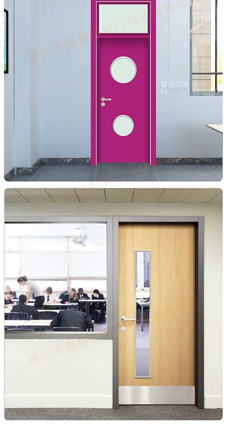 产品简介:chnsige西格特种门,专业生产教室门,学校教室门,教室门木门,培训班门,培训学校门,多钟款式、颜色,尺寸可定制。