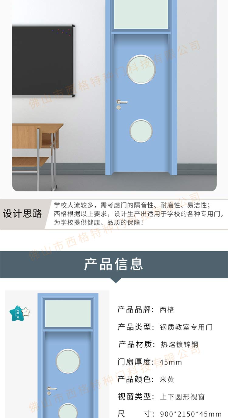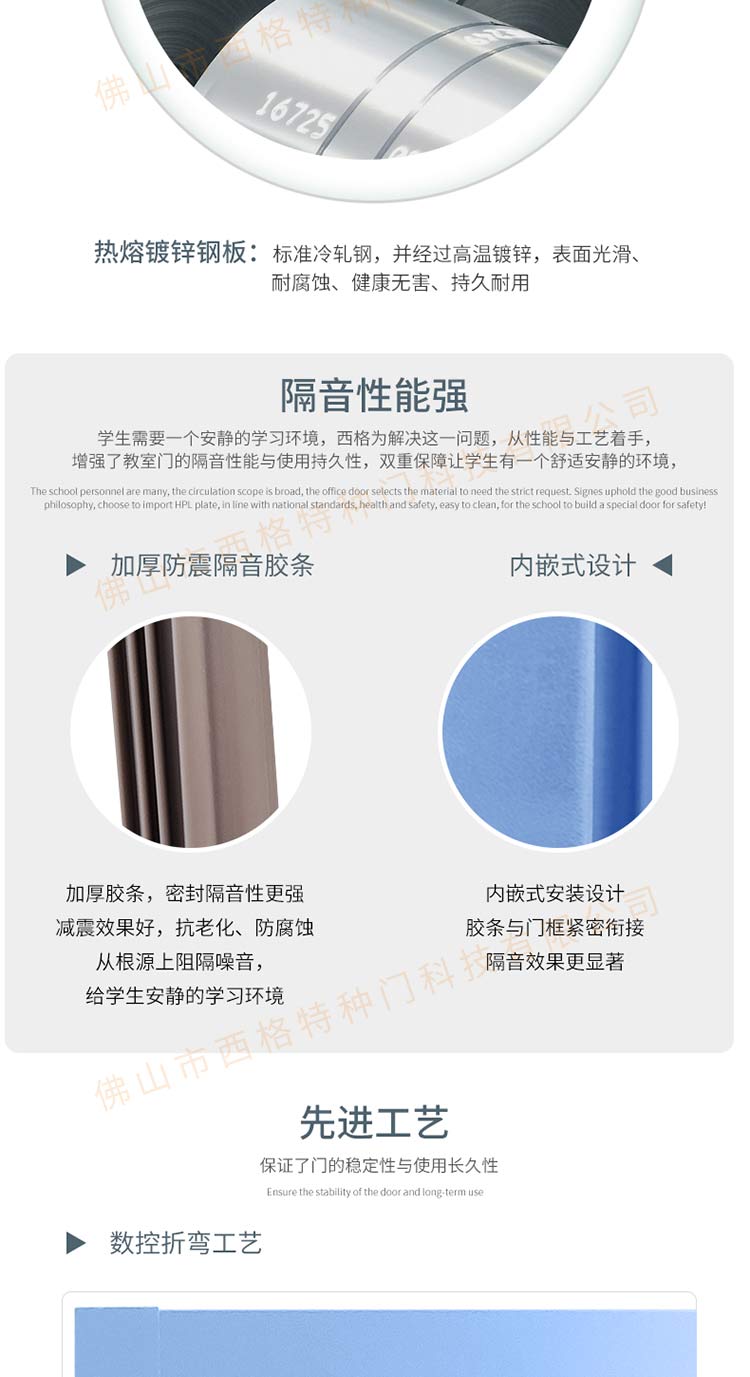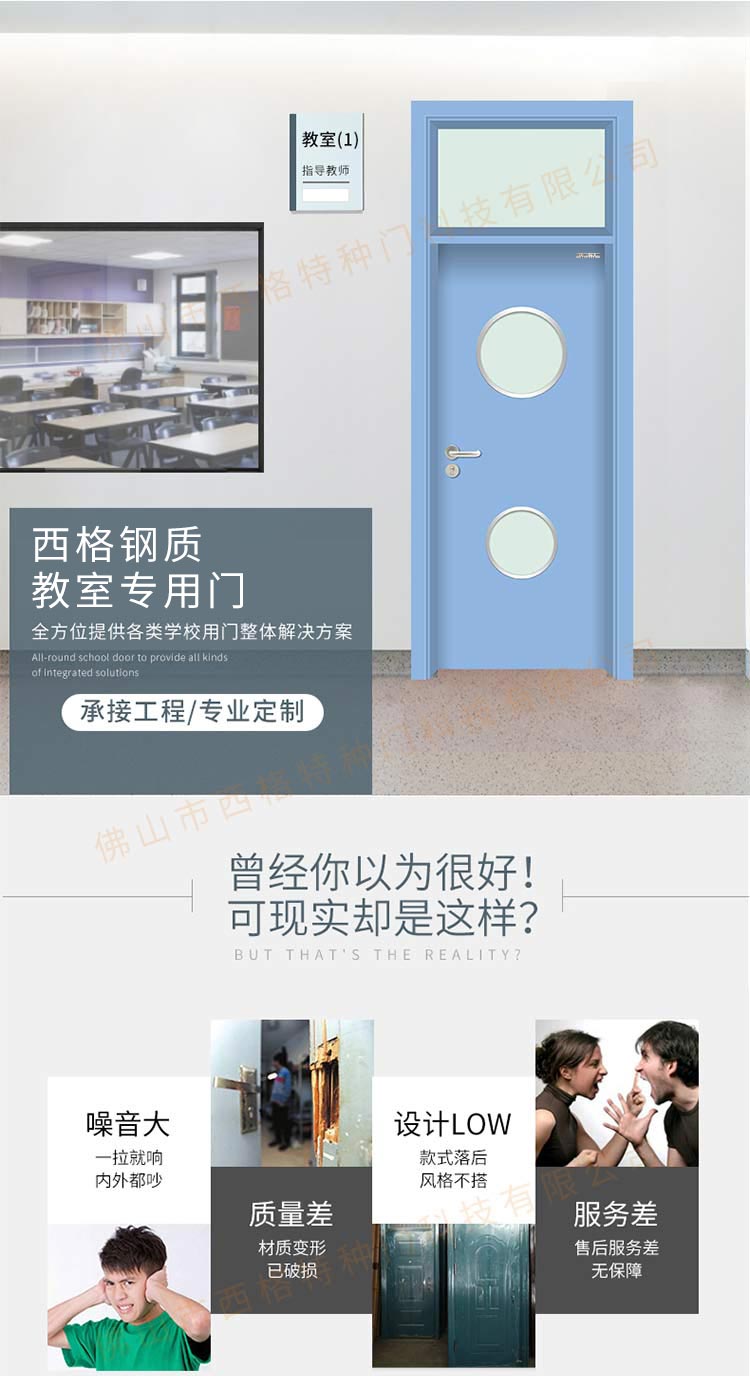 产品简介:chnsige西格特种门,专业生产教室门,学校教室门,教室门钢质门,培训班门,培训学校门,多钟款式、颜色,尺寸可定制。