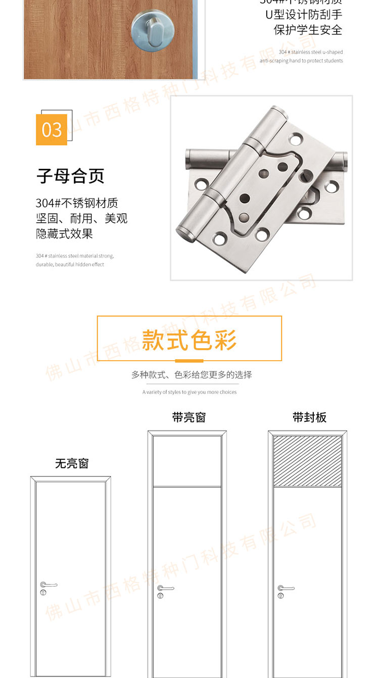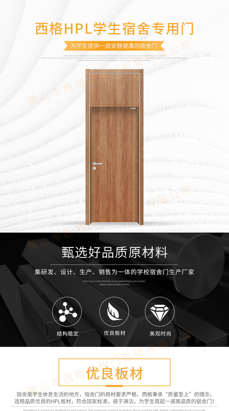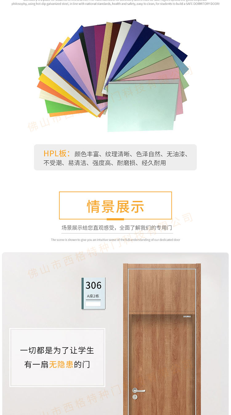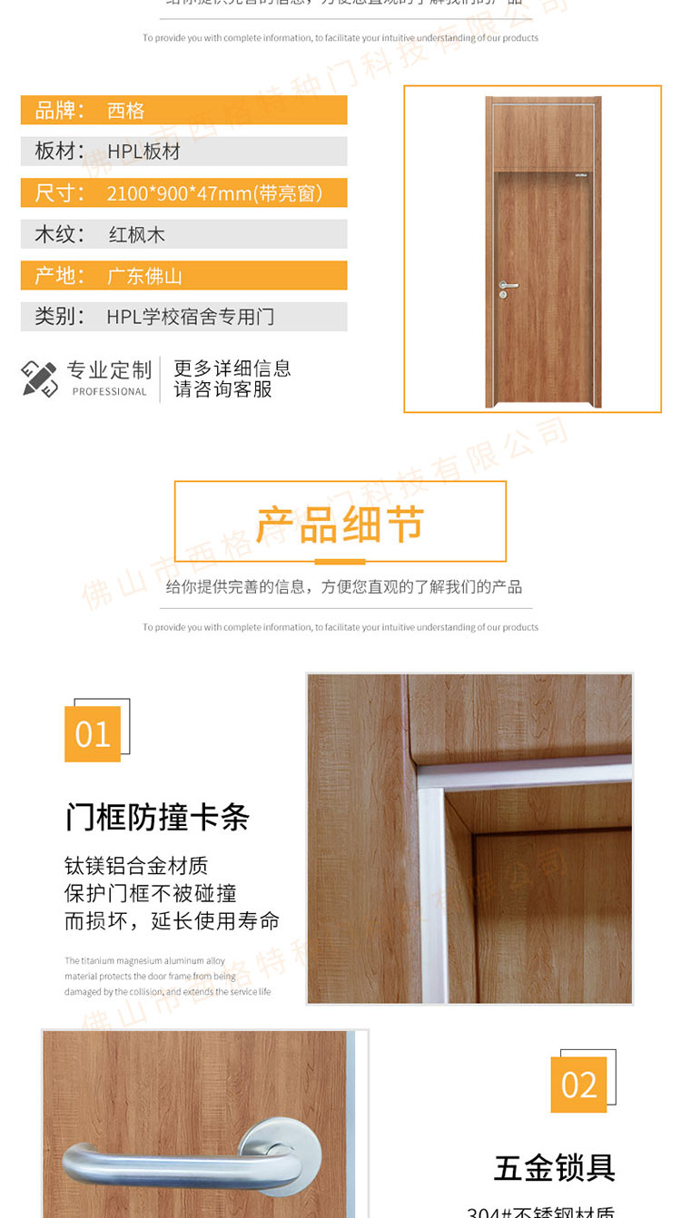 产品简介:chnsige西格特种门,专业生产学校宿舍门,木质学校宿舍门,学校宿舍木门,学生宿舍门,多钟款式、颜色,尺寸可定制。