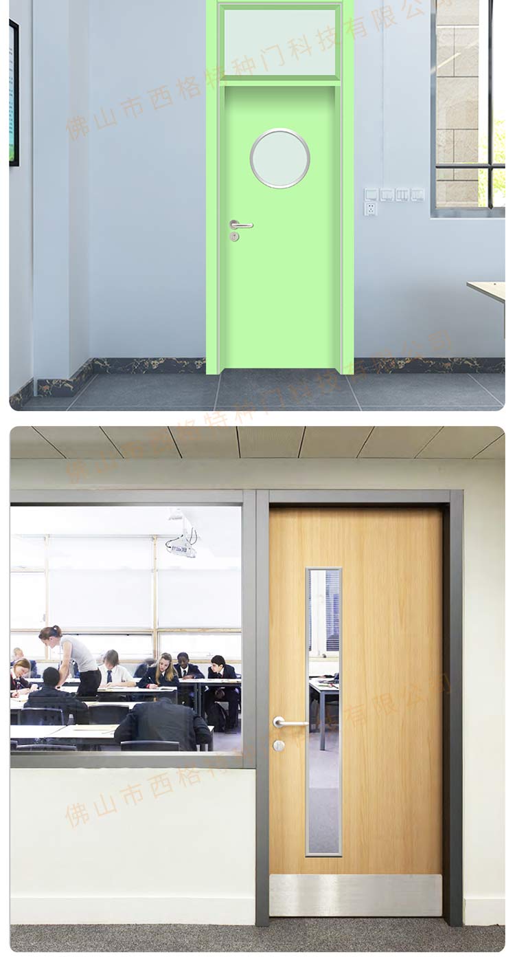 产品简介:chnsige西格特种门,专业生产教室门,学校教室门,教室门木门,培训班门,培训学校门,多钟款式、颜色,尺寸可定制。