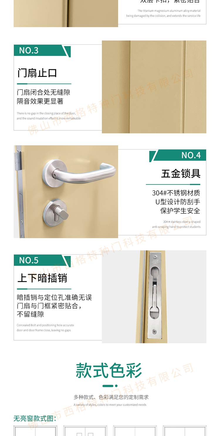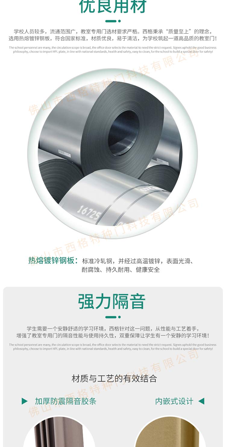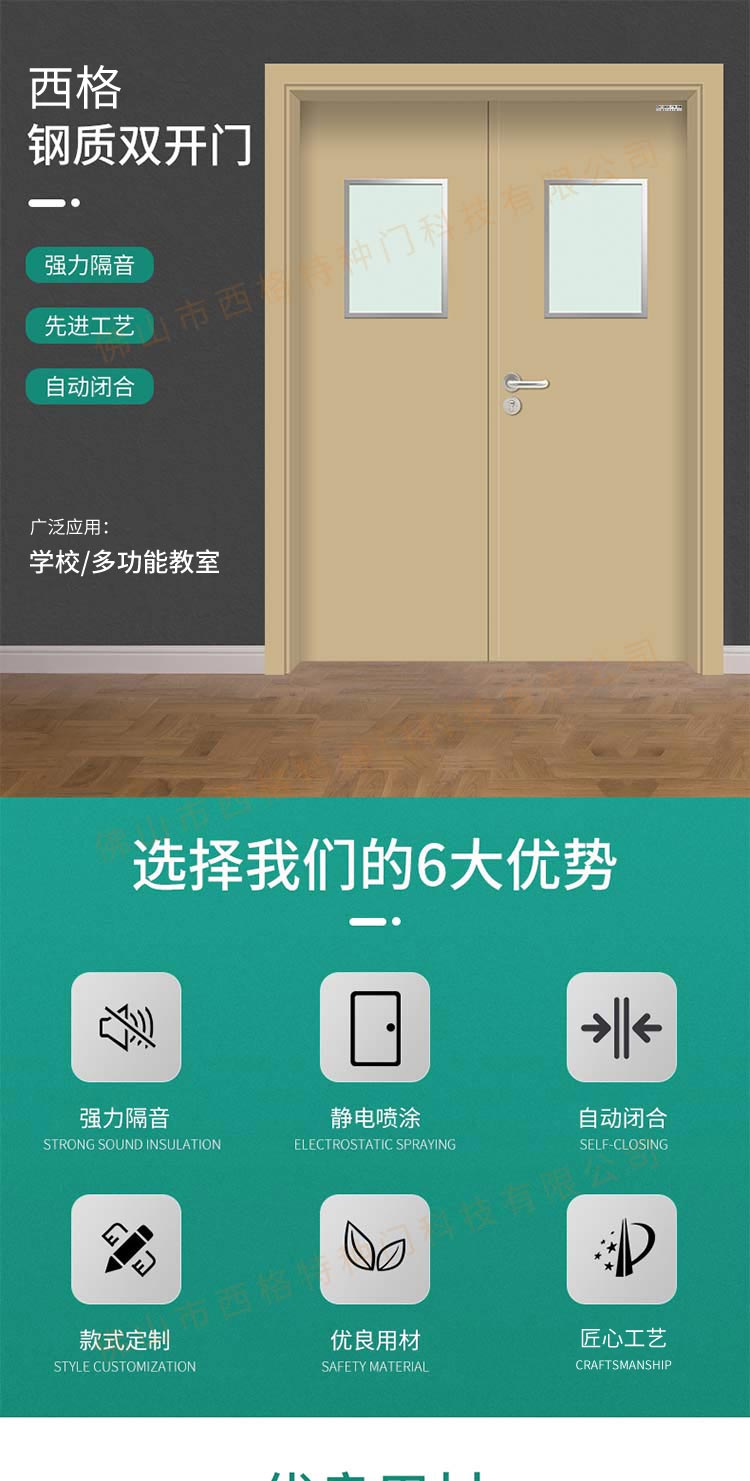 产品简介:chnsige西格特种门,专业生产教室门,学校教室门,教室钢质门,培训班门,培训学校门,多钟款式、颜色,尺寸可定制。