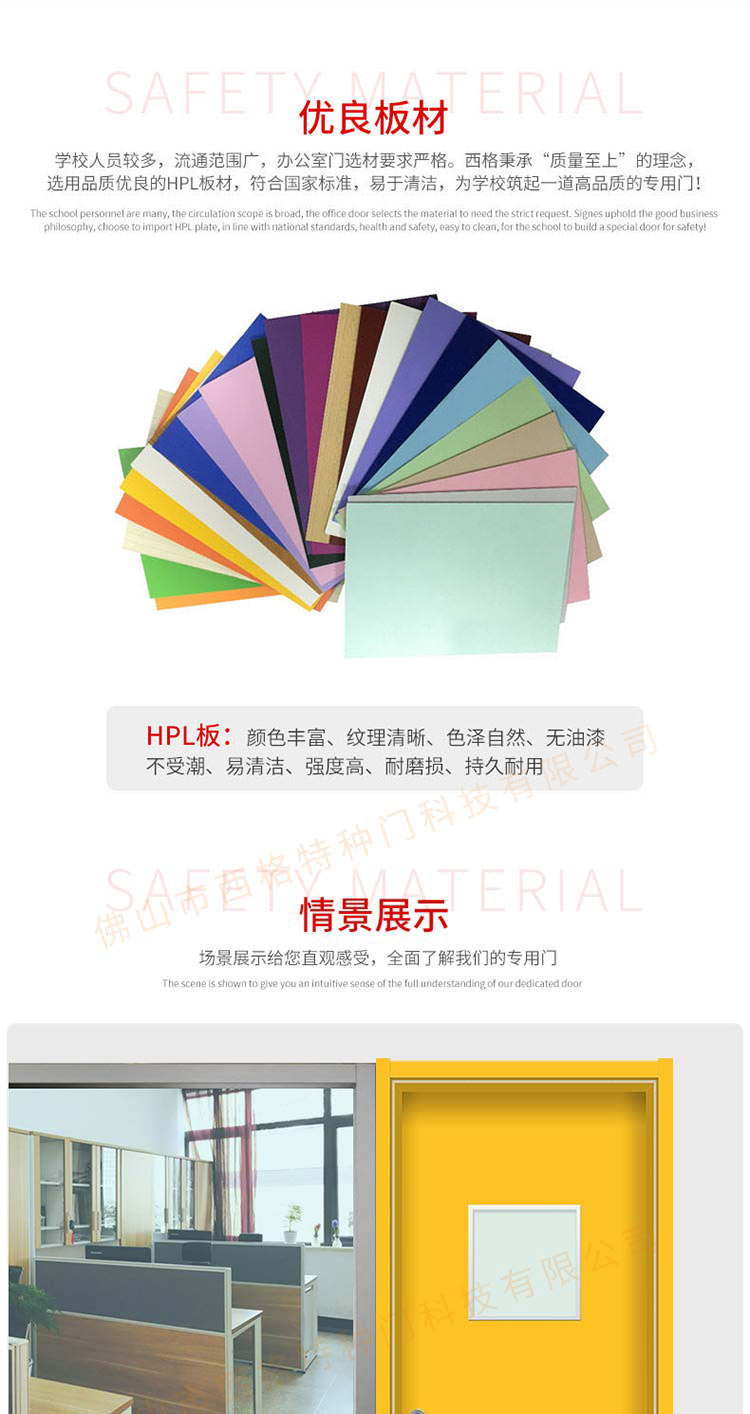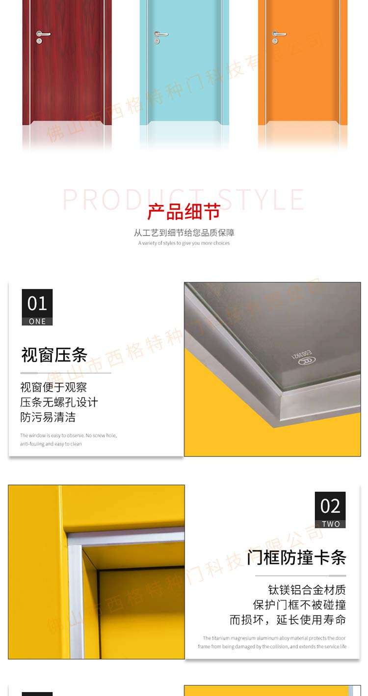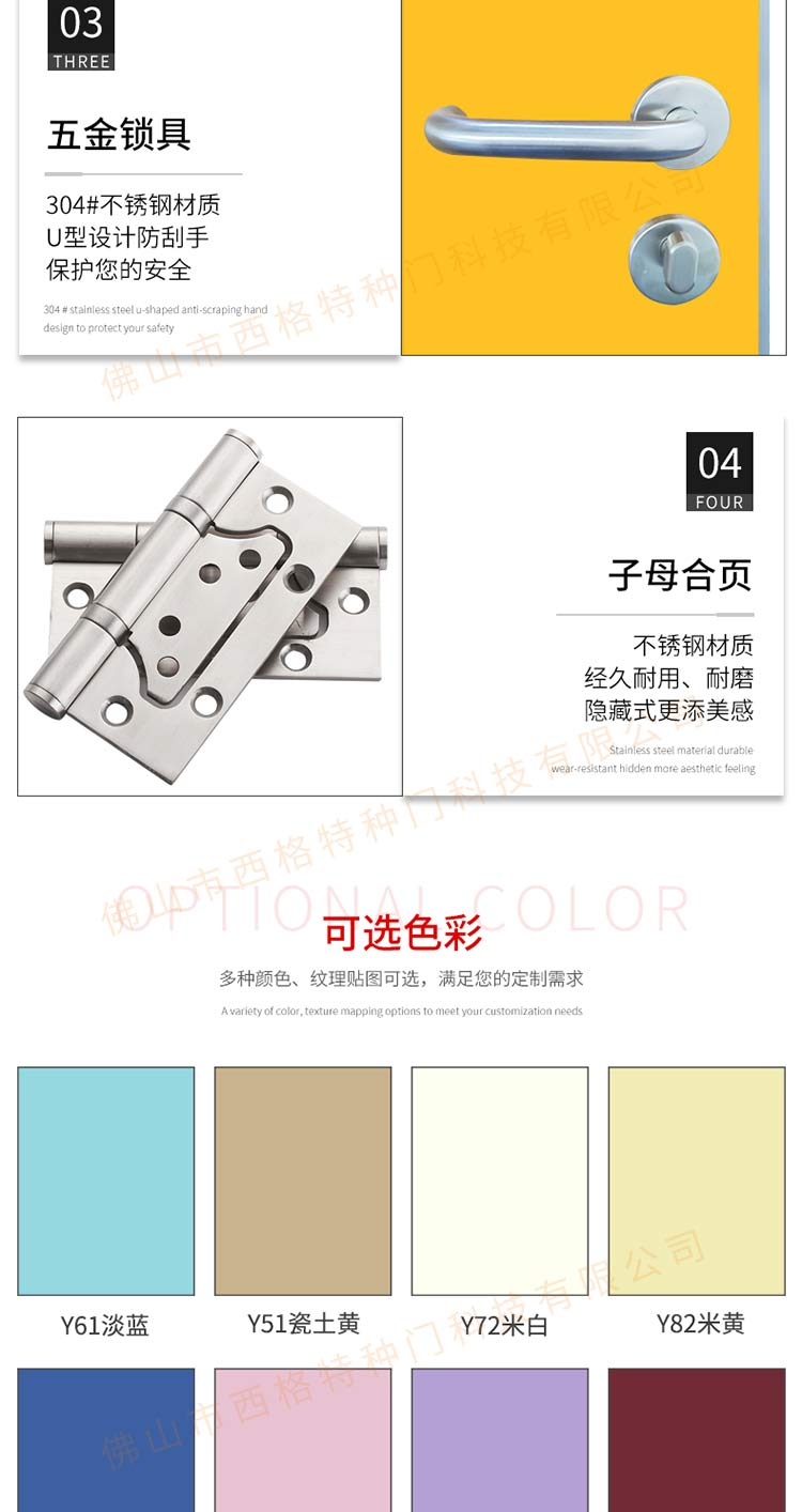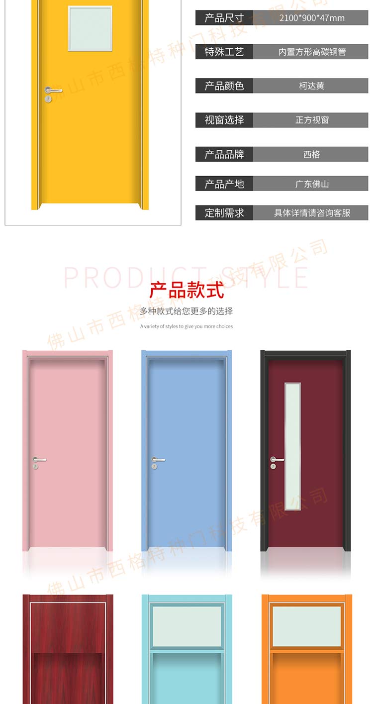 产品简介:chnsige西格特种门,专业生产学校门,学校教室门,学校办公室门,学校木门,木质学校门,多钟款式、颜色,尺寸可定制。