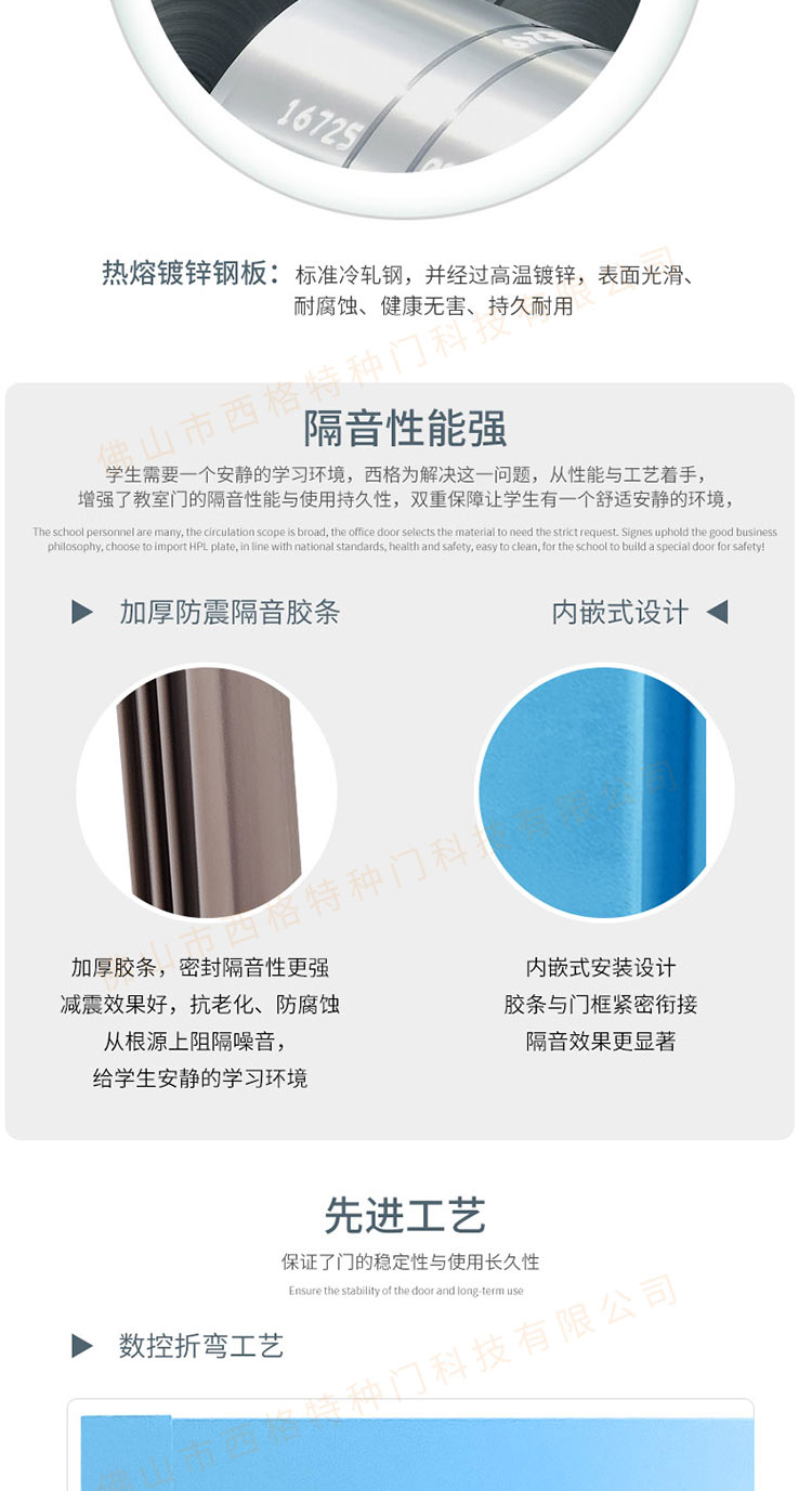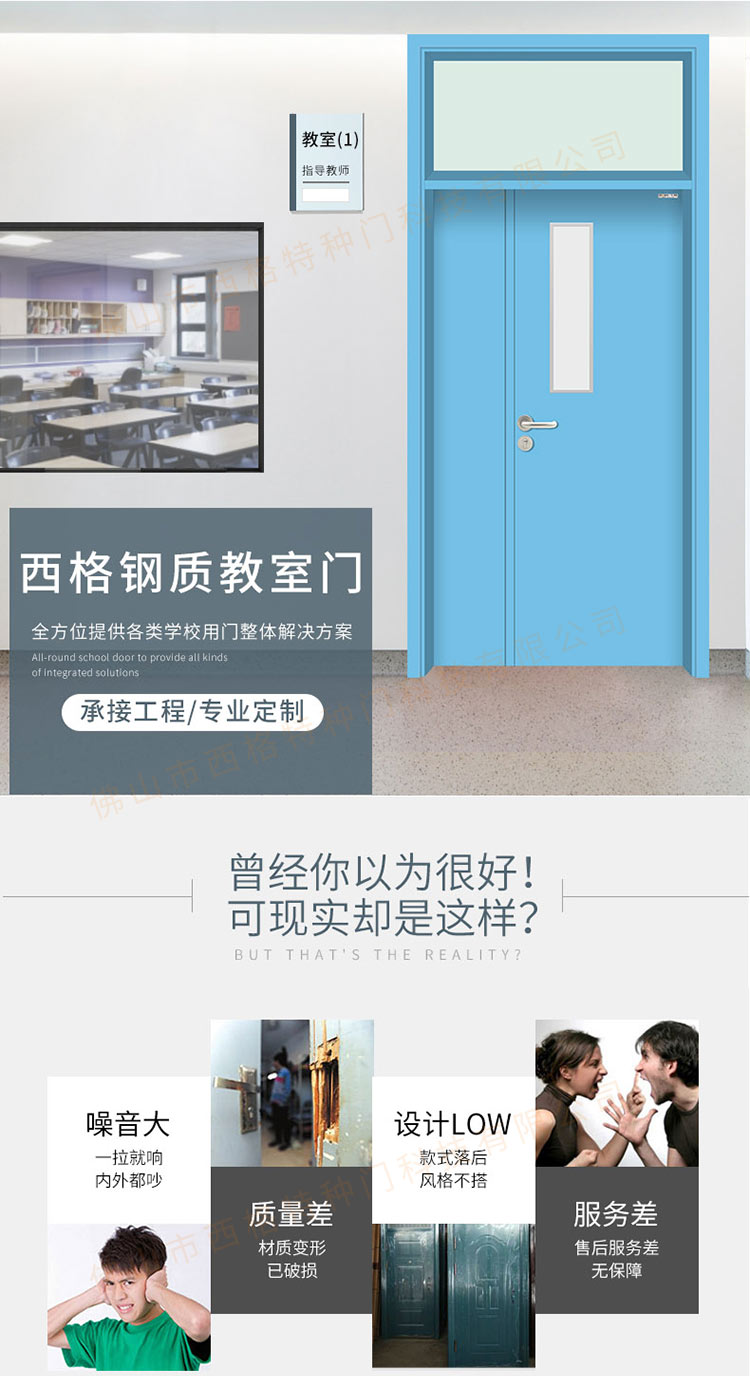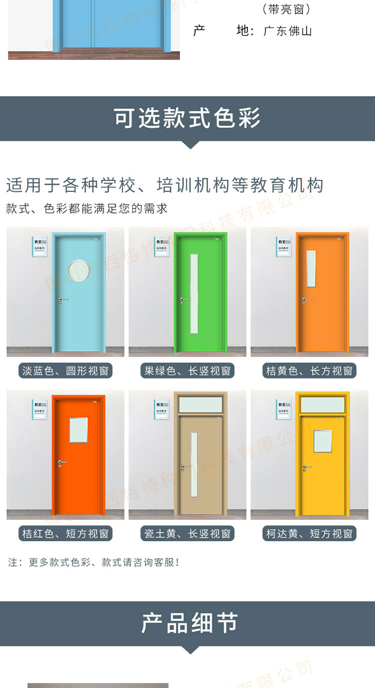 产品简介:chnsige西格特种门,专业生产教室门,学校教室门,教室门木门,培训班门,培训学校门,多钟款式、颜色,尺寸可定制。