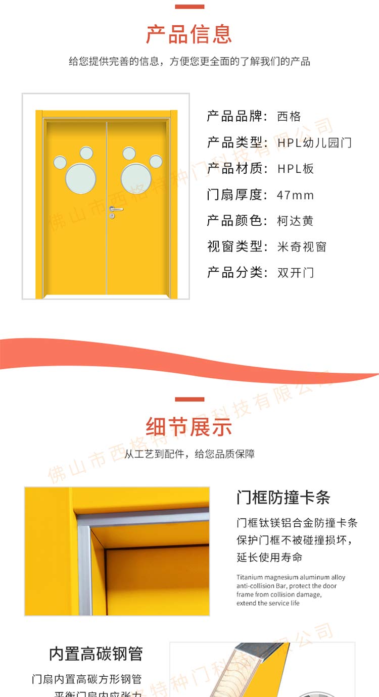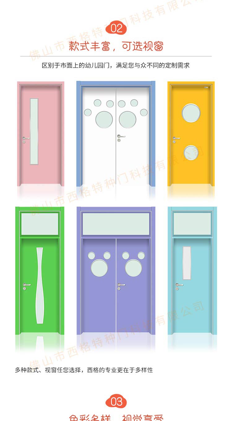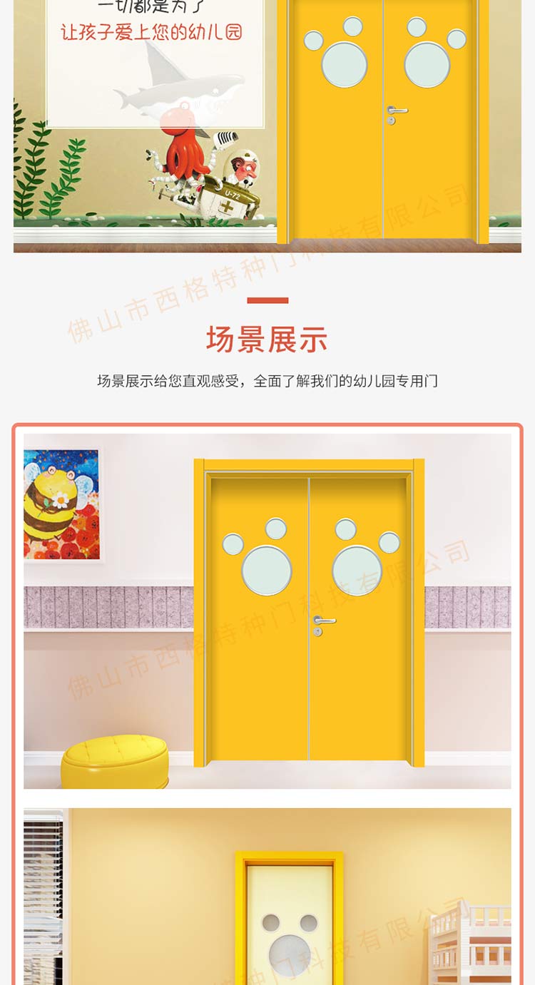 产品简介:chnsige西格特种门,专业生产幼幼儿园门,木质幼儿园门,幼儿园教室门,幼儿园木门,防夹手门,幼儿园防夹手门,多钟款式、颜色,尺寸可定制。