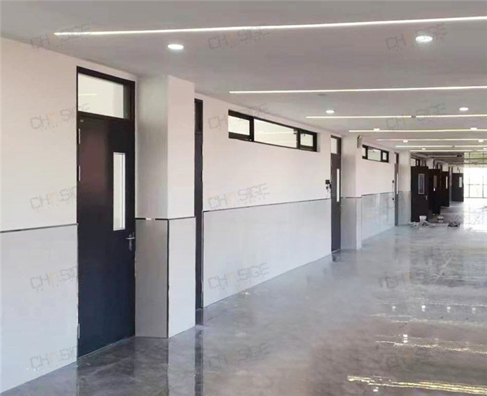 考虑到学校门会经常受到碰撞,校方采用坚固耐碰撞的钢质门,以延长其使用寿命,其次,西格根据极具美学的空间设计,将色彩与布局完美融合,在宽敞的走廊里,采用大气稳重的深灰色,营造一种让人沉稳安宁的学习氛围。